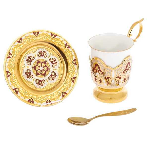 Coffee couple "Gerb" for 1 person, ZlatoustCoffee couple "Gerb" for 1 person, ZlatoustThe collections of fine tableware from the masters of Zlatoust are spectacularly decorated with painting, etching and gilding. After an elegant pattern is applied to the polished surface, the product is dried in an oven and processed, after which the pattern becomes embossed.