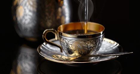 Russian gemsThe saucer from the coffee set "Rosette" made of silverThe saucer from the coffee set "Rosette" made of silverSilverware is a privilege of the elite, a sign of aristocracy and luxury. The radiance of the precious metal reflects the refined taste of the owner, ennobles not only the festive table, but also the entire surrounding interior.