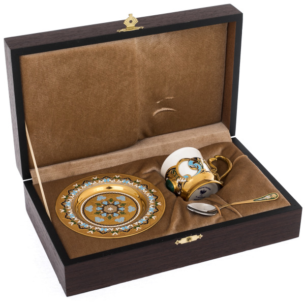 Imperial Porcelain FactoryCoffee set "Black coffee" with the pattern "Gifts of the East" (2 items)Coffee set "Black coffee" with the pattern "Gifts of the East" (2 items)The Imperial (Lomonosov) Porcelain Factory, established by order of Empress Elizabeth in the middle of the XVIII century in St. Petersburg, produces works of art from high-quality porcelain, preserving the ancient traditions of production. The products of this legendary enterprise are famous all over the world and are in demand among lovers of luxury tableware.