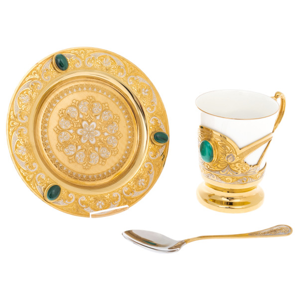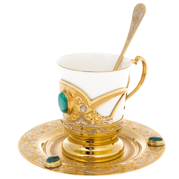 Coffee pair "Morning" with malachite, for 1 person, Zlatoust