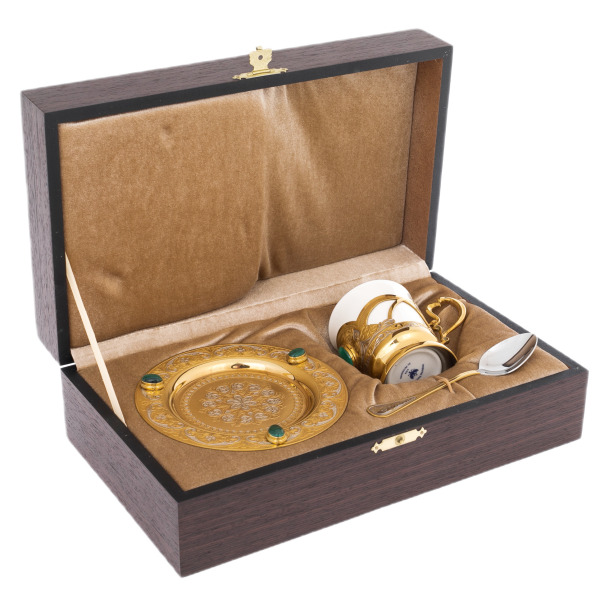 Imperial Porcelain FactoryCoffee set "Black coffee" with the pattern "Gifts of the East" (2 items)Coffee set "Black coffee" with the pattern "Gifts of the East" (2 items)The Imperial (Lomonosov) Porcelain Factory, established by order of Empress Elizabeth in the middle of the XVIII century in St. Petersburg, produces works of art from high-quality porcelain, preserving the ancient traditions of production. The products of this legendary enterprise are famous all over the world and are in demand among lovers of luxury tableware.