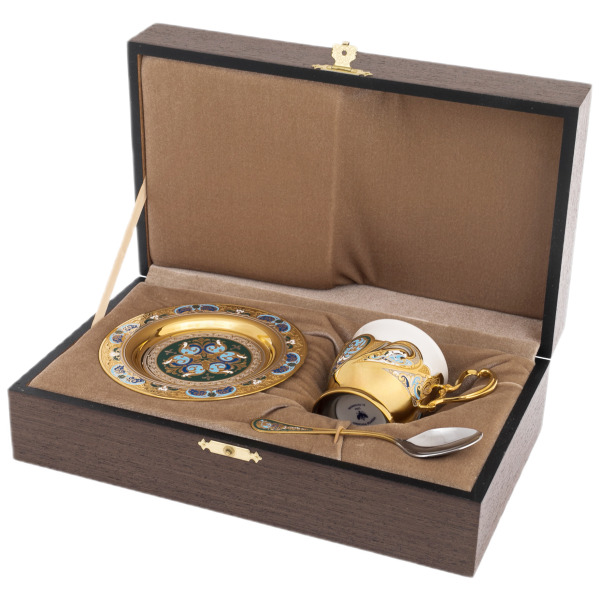 The box in which this set is carefully placed is made of wood and trimmed with soft velvet. It contains not only the elements of the set, but also a sense of significance and exclusivity. This coffee set is an ideal choice for those who are accustomed to surround themselves with only the best, emphasizing their right to exquisite taste and absolute pleasure from every moment.