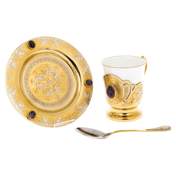 Coffee set "Morning" with amethyst, for 1 person, Zlatoust