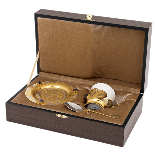 Imperial Porcelain FactoryCoffee set "Black coffee" with the pattern "Gifts of the East" (2 items)Coffee set "Black coffee" with the pattern "Gifts of the East" (2 items)The Imperial (Lomonosov) Porcelain Factory, established by order of Empress Elizabeth in the middle of the XVIII century in St. Petersburg, produces works of art from high-quality porcelain, preserving the ancient traditions of production. The products of this legendary enterprise are famous all over the world and are in demand among lovers of luxury tableware.