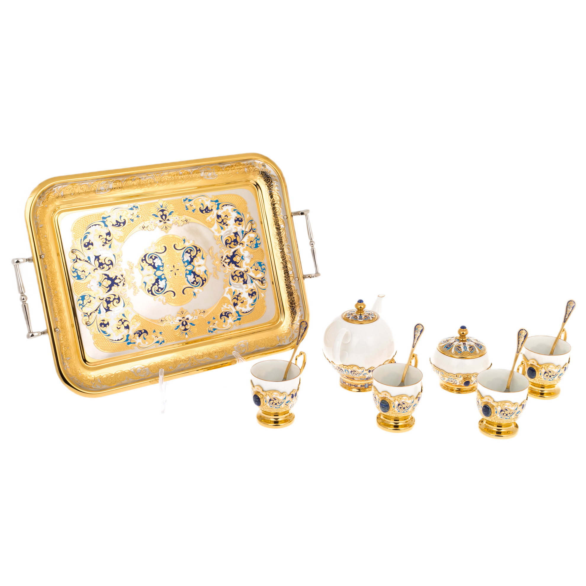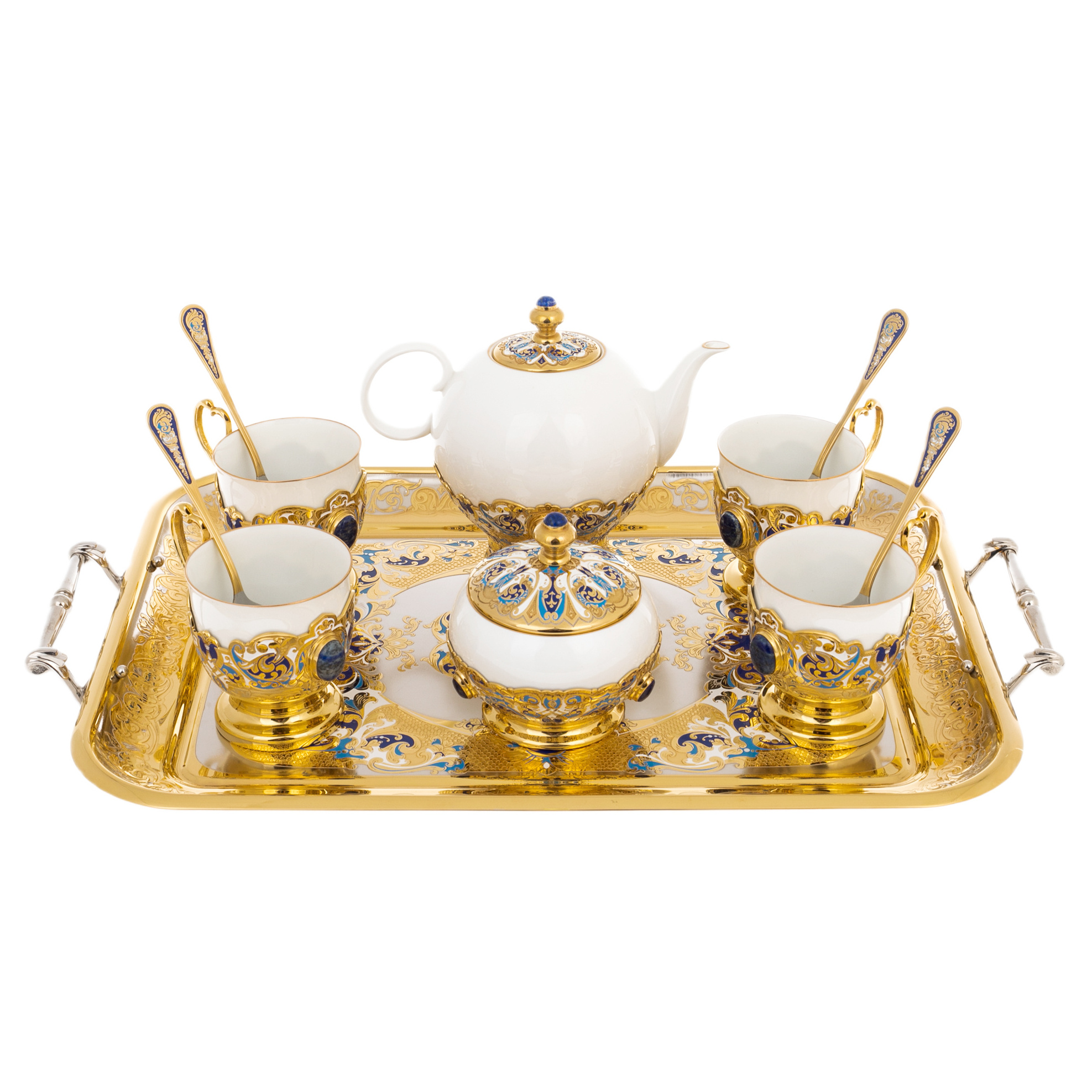 Coffee set "Lily of the Valley" with lapis lazuli, for 4 persons, Zlatoust