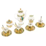 Blue Leaves coffee set for 6 peopleBlue Leaves coffee set for 6 peopleCloisonne enamel is an ancient skillful method of decorating metal surfaces, which gives objects a unique charm. Shining cutlery, exquisite tableware and elegant decorations, made in a unique way, have become an integral part of the interior and style in our time. The splendor of cloisonne enamel attracts the eye and causes delight. Bright and juicy colors, ornaments and patterns are all essential signs that you have in front of you a product that will add charm and sophistication to your home, decorate it and create an atmosphere of comfort. The harmony of shape and color, the fine elaboration of details make each piece of the collection a real work of art, emphasizing the refined taste and unsurpassed style of the owner. Enameled objects of various colors will delight you with their unique beauty every day, reminding you that art can be a part of your life.