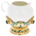 Silver-cast tableware items are covered with the finest relief pattern of silver threads. Then an enamel pattern is applied inside the contour and the entire product is covered with glaze paint. About 20 craftsmen work on each subject. The process is very laborious, but the result is worth it, because the created object is a work of art.