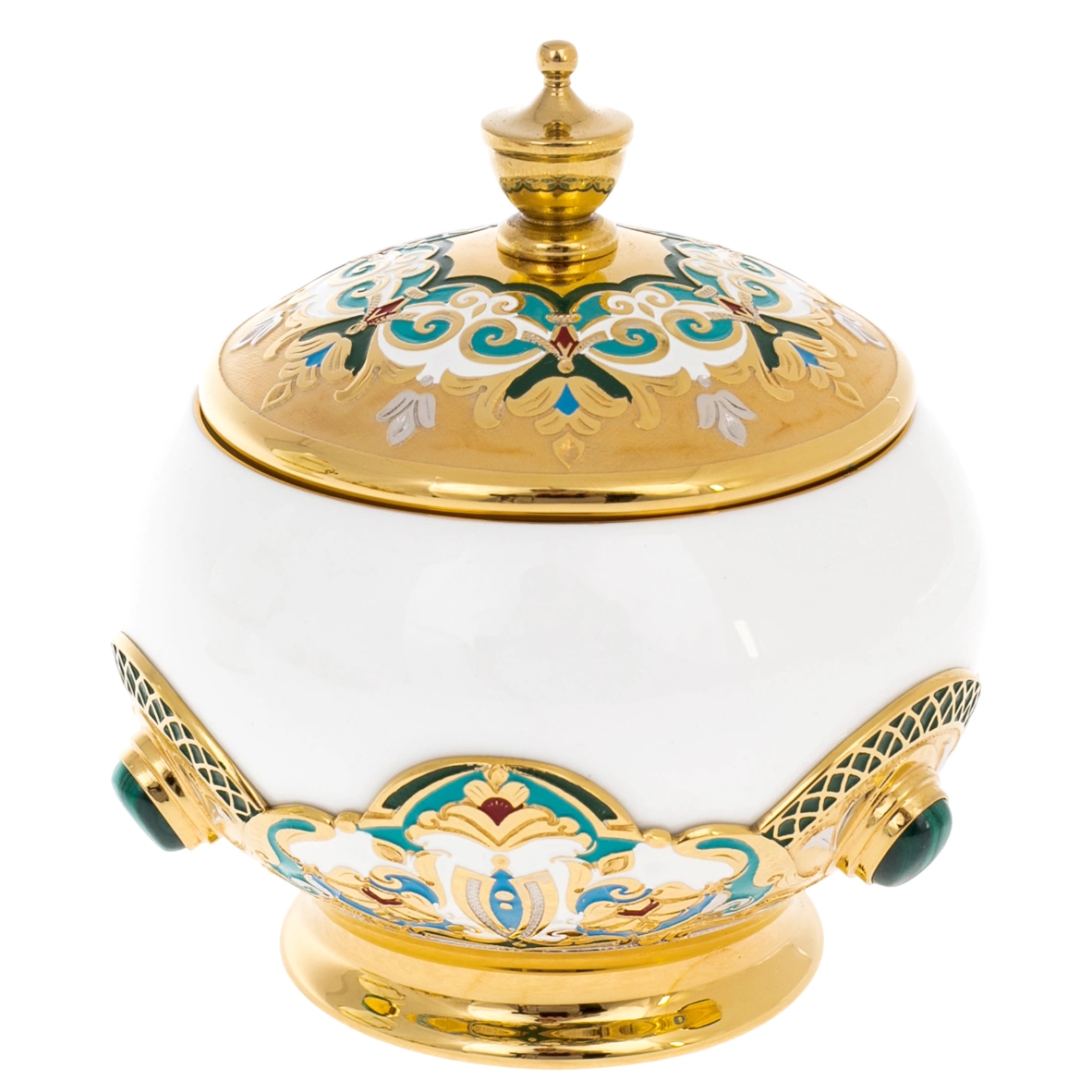 The magic of cloisonne enamel is manifested in every stroke of the pattern embedded in the contour of these patterns. Drops of bright paint seem to have frozen in them, creating complex and multidimensional images that captivate the eye and cause admiration. Each product is finished with glaze paint, which enhances the depth of color and adds a deep shine effect.