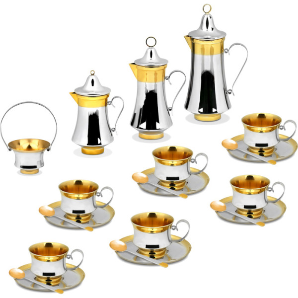 Russian GemsFurtsevsky coffee set for 6 peopleFurtsevsky coffee set for 6 peopleThe silver coffee set "Furtsevsky", covered with gilding, is a true treasure of craft craftsmanship. Its brilliance and grandeur are the fruit of the painstaking work of craftsmen inspired by the ancient art of Byzantium and perfected by Russian jewelers of the 19th century, among whom were such names as Carl Faberge and Pavel Ovchinnikov.