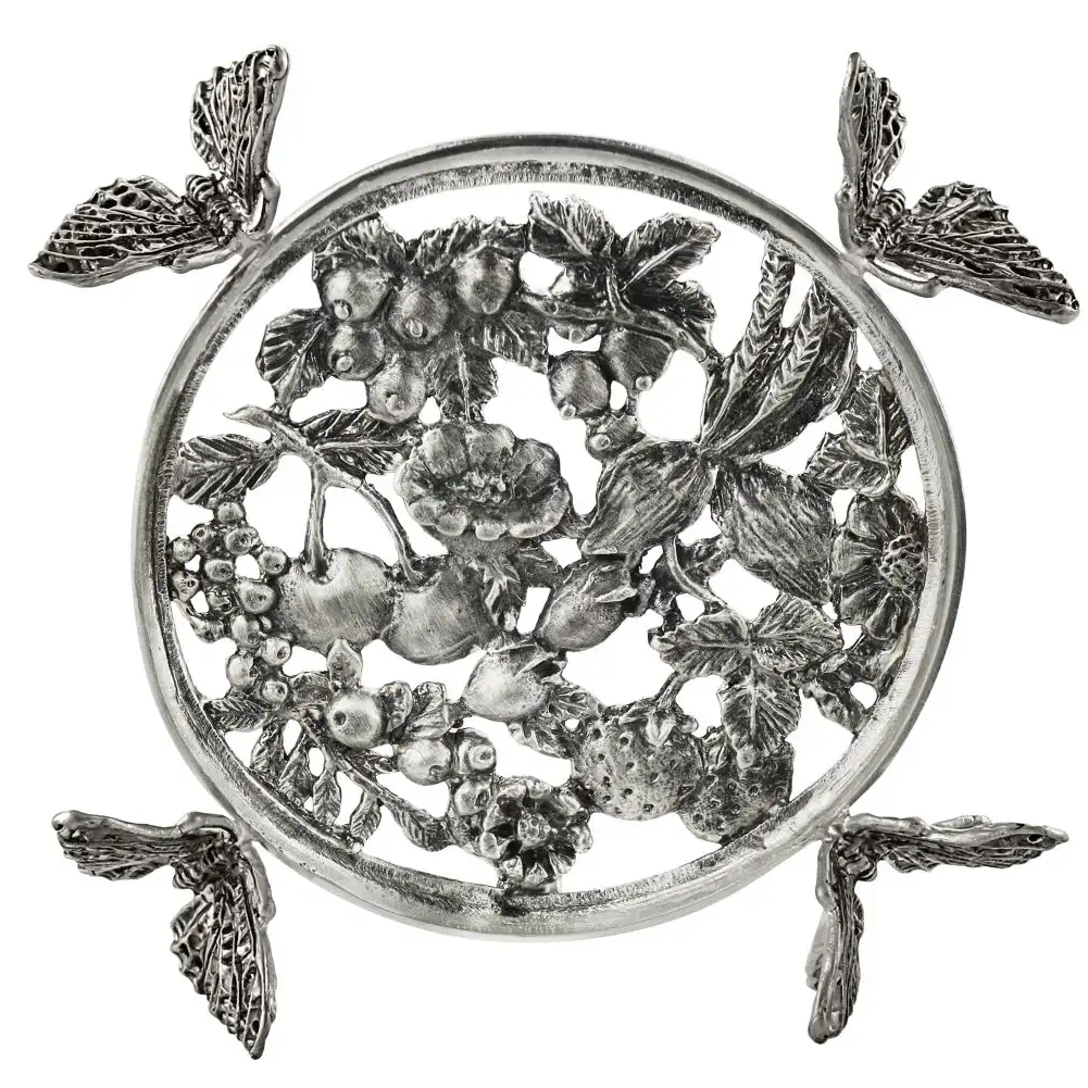 Подставка под турку "Бабочки" посеребренная с чернением, без ножек