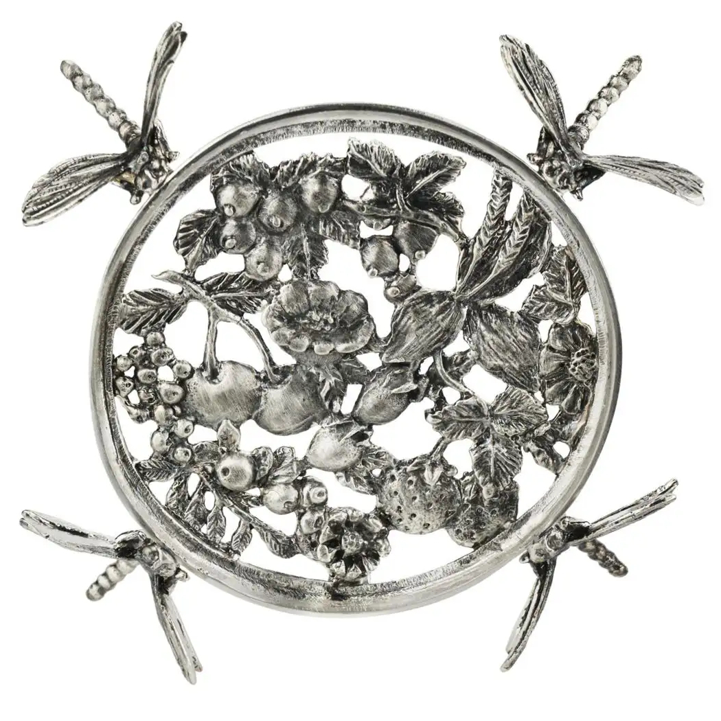 Подставка под турку "Стрекоза" посеребренная с чернением, без ножек