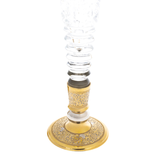 Crystal is not just a material; it is the epitome of elegance and solemnity. These wine glasses are created using ancient technologies that are passed down from generation to generation by master artists. The engraving is done manually, which makes each copy unique. The gold details covering the bottom of the glass are made of high-quality alloy and polished to a high gloss, harmoniously combining with the transparency of the crystal. This design allows you not only to emphasize the status of the owner, but also to make the process of drinking a drink a true pleasure for the eyes and senses.