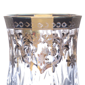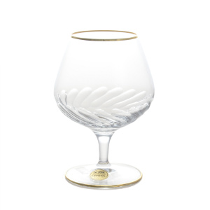 A set of Art Deco wine glasses` "Coll.Edelweiss" for 6 peopleA set of Art Deco wine glasses` "Coll.Edelweiss" for 6 peopleA set of clear glass glasses looks really elegant and solemn. It will appeal to both connoisseurs of classics and those who prefer sophistication and originality. The products are decorated with an elegant golden pattern and a thin border around the edge of the glass.