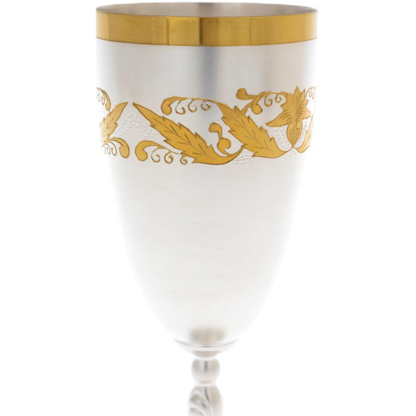The bowl of the glass has elaborately engraved patterns in the form of gold ornaments, which give it a special sophistication. The gilding on the edges of the glass creates a bright contrast with the cold sheen of silver, which turns an ordinary drink into a real royal treat. With every touch, you will feel the magic of this product, which seems to invite you to plunge into the atmosphere of real luxury and grandeur.