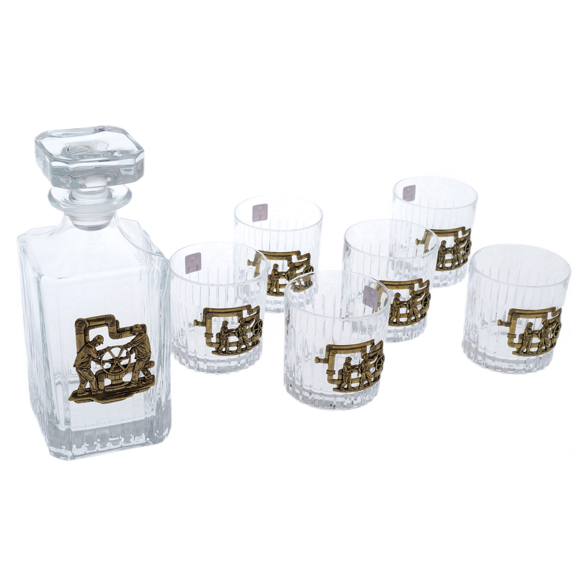 Набор для виски "Газовик. Timeless" на 6 персон — это воплощение силы и стабильности, созданное специально для тех, кто привык к жизни на вершине. Этот эксклюзивный комплект выполнен в лучших традициях златоустовского мастерства, сочетающего гравировку и золочение, что делает его не просто предметом интерьера, а настоящим произведением искусства.