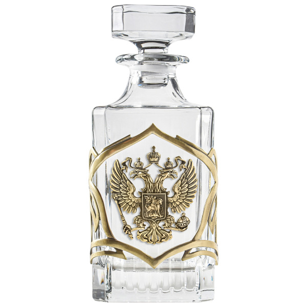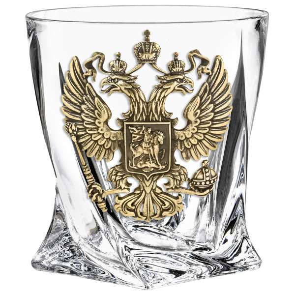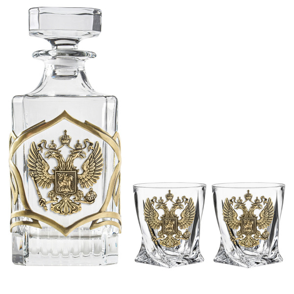Coat of Arms of the Russian Federation whiskey set for 2 persons, in a wooden box