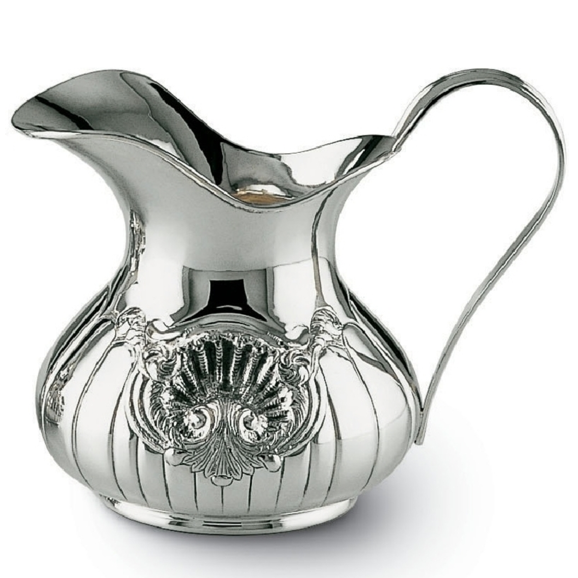 The exquisite silver jug, inspired by the motifs of the great Venice, embodies the grace of the sea element and the sophistication of the classical style. Its rounded silhouette, like a sea pearl, hides a precious play of light and shadows, shimmering on the smooth surface of the noble silver.