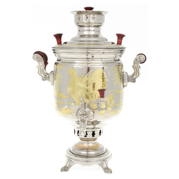 Nickel-plated brass samovar "Morning in the pine forest" (coal)Nickel-plated brass samovar "Morning in the pine forest" (coal)An ordinary everyday cup of tea is deprived of the most important thing in a real Russian tea party – a special atmosphere, ritual. After all, it is quite problematic to melt a samovar in a multi-storey building, and even more so to do it every morning. Another thing is to treat the process with special trepidation, to put your soul into making tea. The technology of kindling a samovar and making tea itself has many options and features.