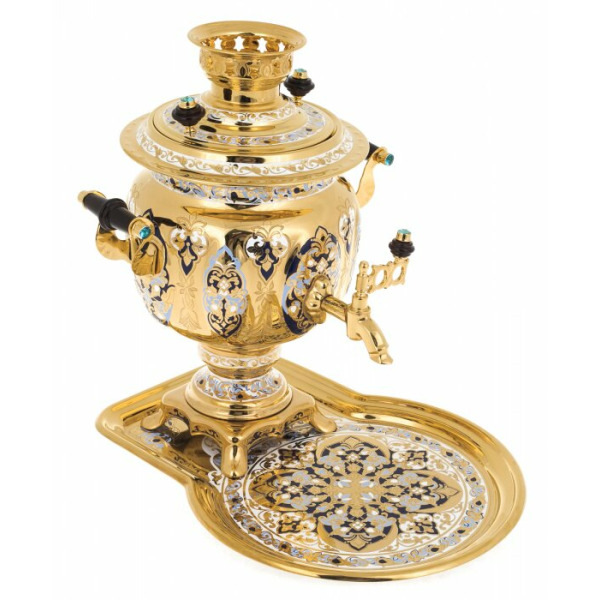 The uniqueness of the Painted samovar is achieved thanks to the enamel painting on filigree. Artists with incredible accuracy and attention to detail create elegant drawings in which each pattern shimmers in blue and white shades of colors, creating unique patterns.