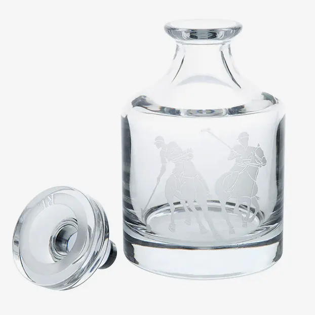 The Garrett decanter is handmade from crystal, with polo riders engraved on it. Today, the emblem of a rider with a raised polo stick is not only a sign of the famous American brand Polo Ralph Lauren. A rider riding a horse is as recognizable as an American flag. It is associated with commercial success and the amazing evolution of style over the course of two centuries.