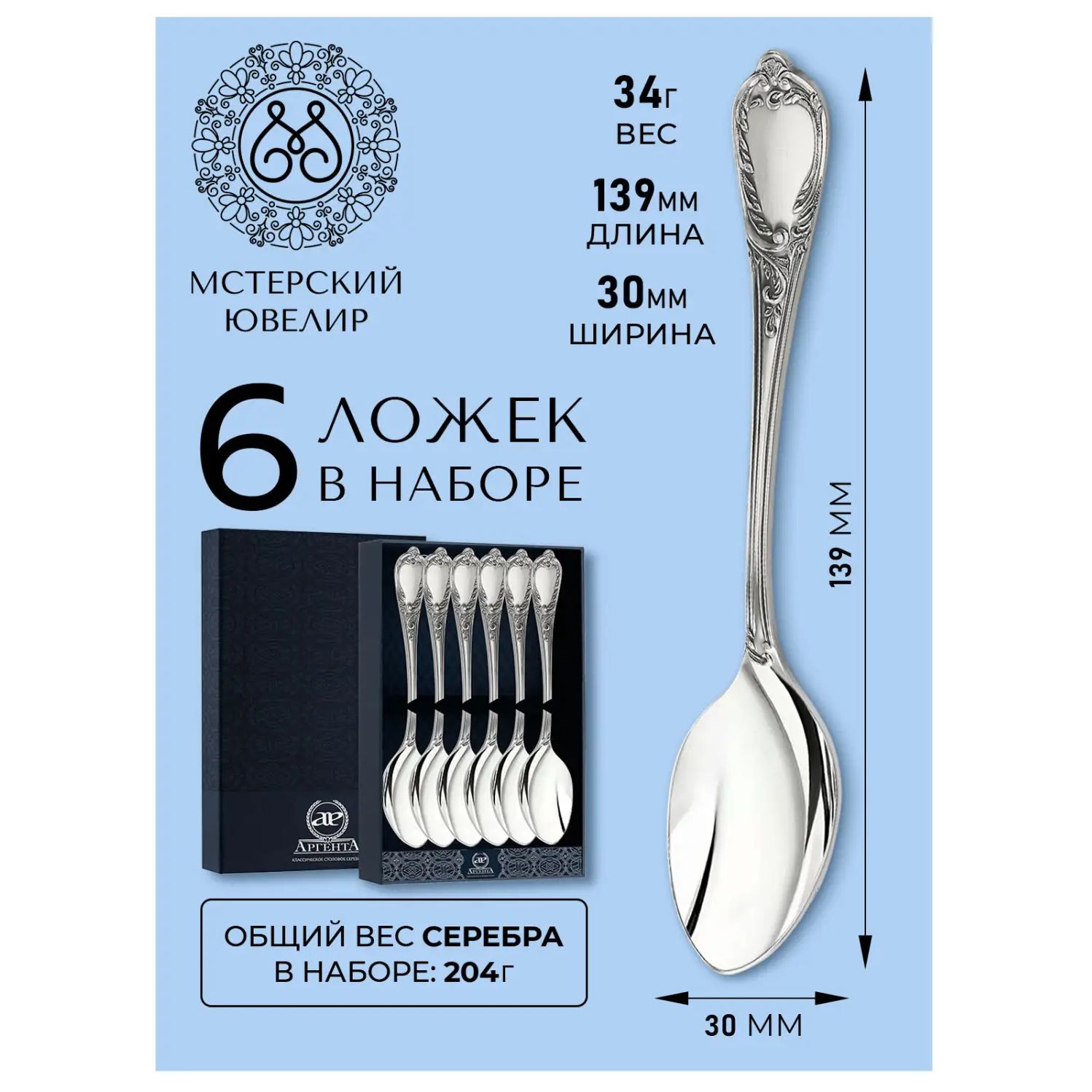 Набор чайных ложек из серебра "Сильвия" на 6 персон