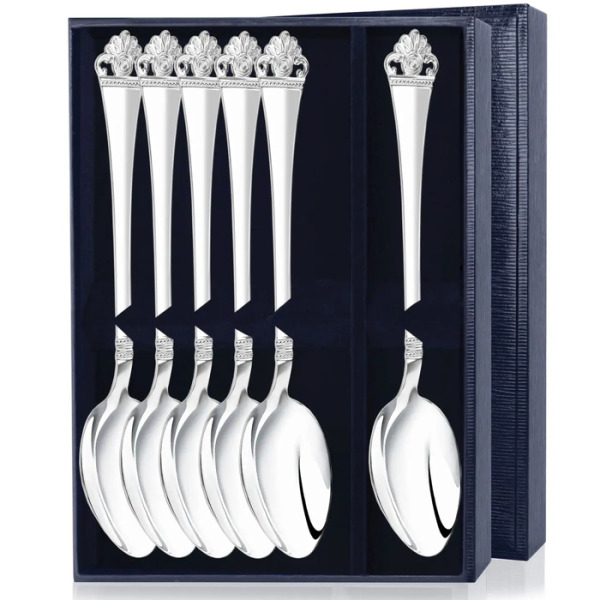 ArgentaSilver set of tablespoons "Favorite" for 6 peopleSilver set of tablespoons "Favorite" for 6 peopleThe collection of classic silverware is a union of centuries-old traditions and modern technologies, aesthetic forms and ergonomic design. All the items in the collection are designed to become cherished family values and be passed down from generation to generation. Stylish and useful, silver cutlery helps to overcome the negative effects of the external environment and strengthens the immune system of the whole family day after day. The classic collection consists of several lines of classic silverware: Favorite, Emperor, Prestige, Visit, Russian, Unity, Elegant, Morozko, Family. Each line has different options for purchase. You can purchase any product separately or a set for one or more people. For large families and large feasts - sets of 24, 48, 51 and more items. All products of the Classic collection are an integral part of the serving of both the festive and everyday table.
