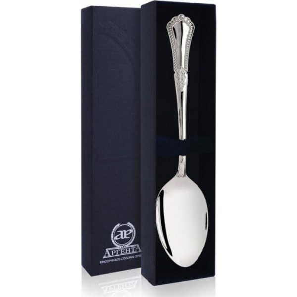 ArgentaSilver tablespoon "Prestige" for 1 personSilver tablespoon "Prestige" for 1 personThe collection of classic silverware is a union of centuries-old traditions and modern technologies, aesthetic forms and ergonomic design. All the items in the collection are designed to become cherished family values and be passed down from generation to generation. Stylish and useful, silver cutlery helps to overcome the negative effects of the external environment and strengthen the immunity of the whole family day after day. The classic collection consists of several lines of classic silverware: Favorite, Emperor, Prestige, Visit, Russian, Unity, Elegant, Morozko, Family. Each line has different options for purchase. You can purchase any product separately or as a set for one or more people. For large families and large feasts - sets of 24, 48, 51 and more items. All the products of the Classic collection are an integral part of serving both festive and casual tables.