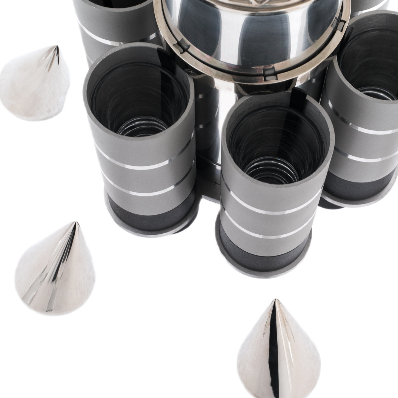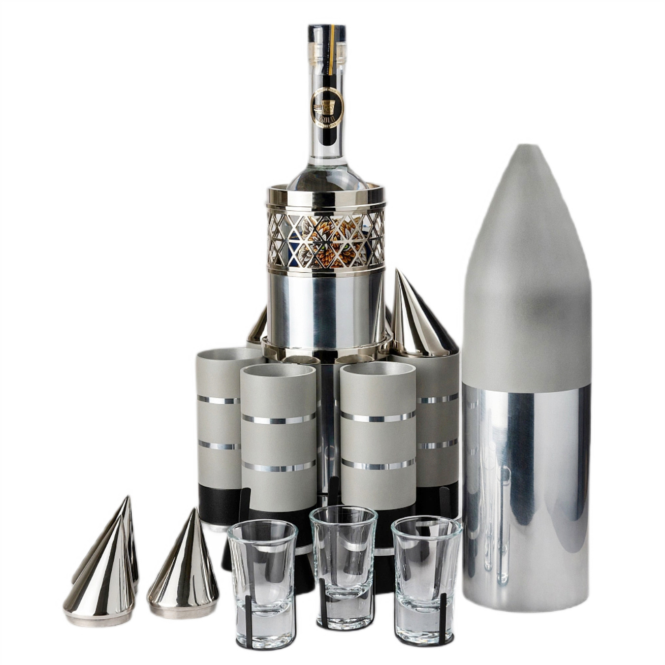 The alcohol set "Rocket" is a work created at the junction of art and engineering precision, embodying the spirit of striving for new heights and daring achievements. This exquisite composition not only decorates the interior, but tells a story of triumph inspired by the era of great discoveries.