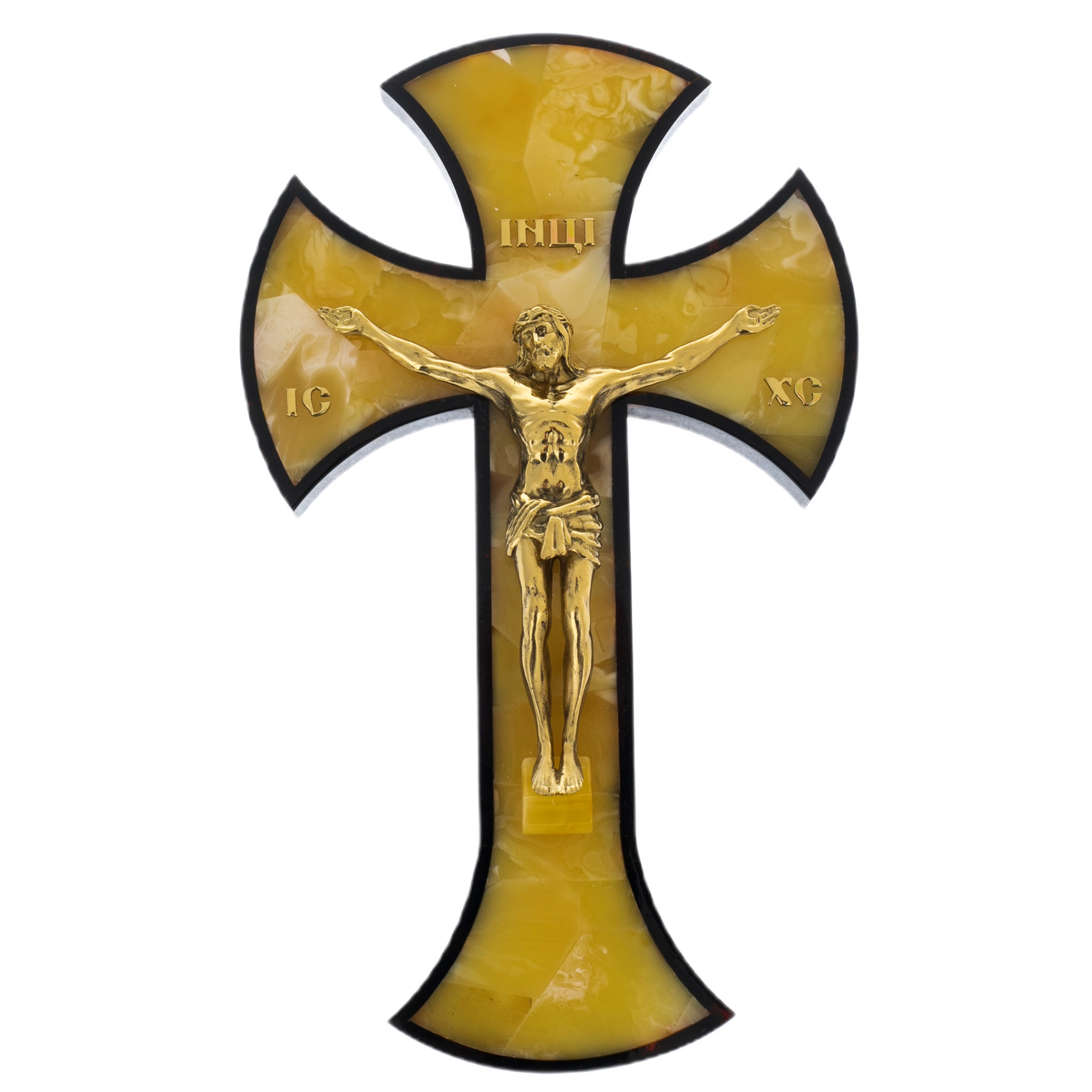 Materials:natural amber, edging of the cross - pressed amber, brass polished under varnish, mahogany.