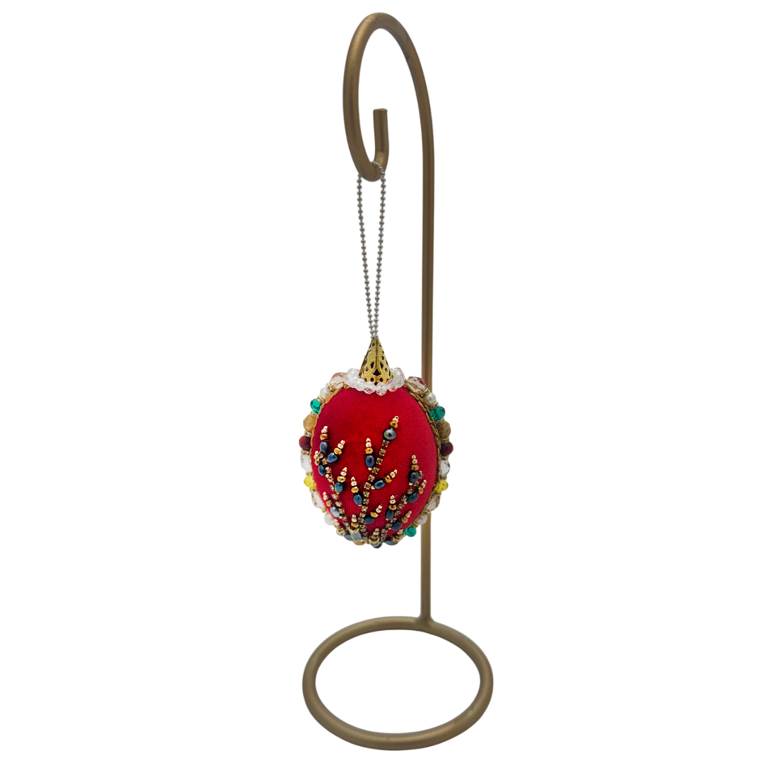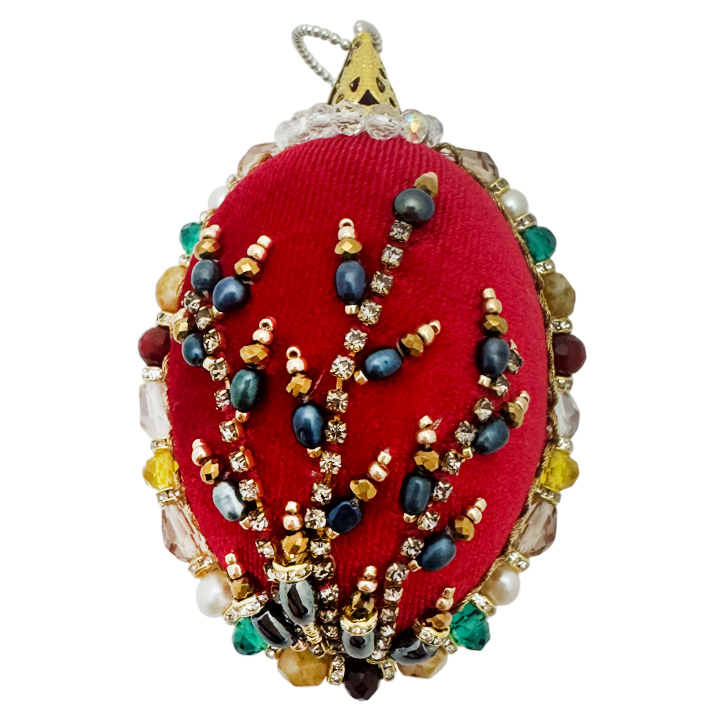 Яйцо вышитое драгоценными камнями "Пасха" красное