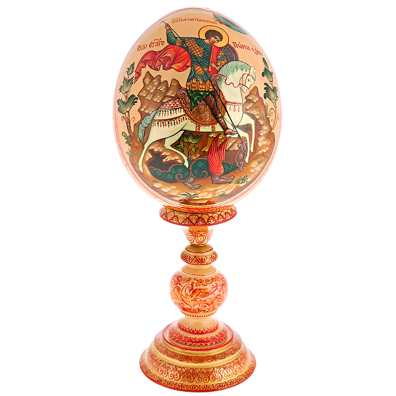 Materials:ostrich egg (shell), tempera, varnish, stand - wood.