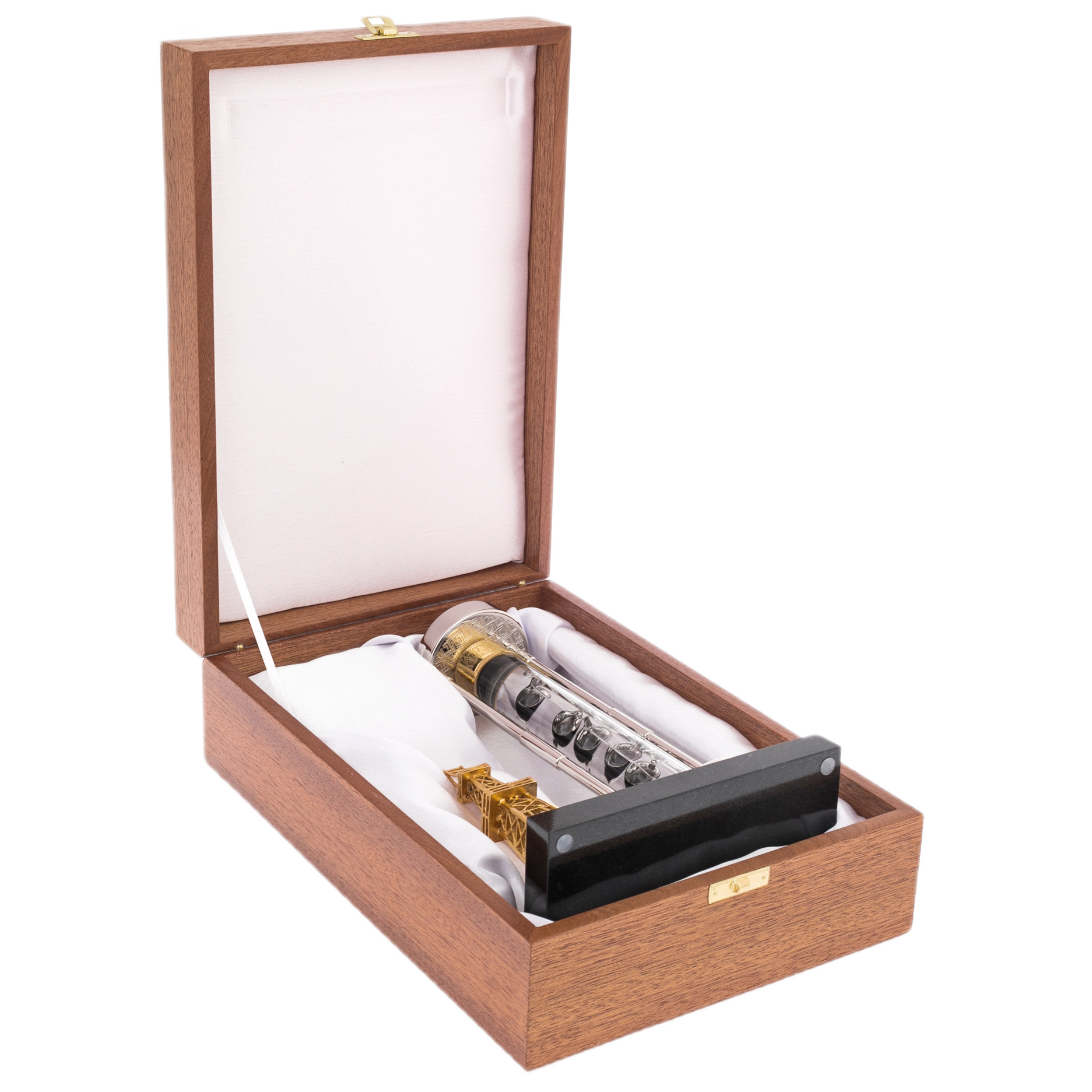 The Oil Rig desktop thermometer is not just a functional device, but a symbol of foresight, strength and precision. It seems to appeal to its owner, reminding him: measure the temperature of the world, feel its fluctuations, control the processes that shape the future. Packed in an exquisite wooden case, it will become a gift that can emphasize the exceptional taste and high status of a person standing at the top of success.
