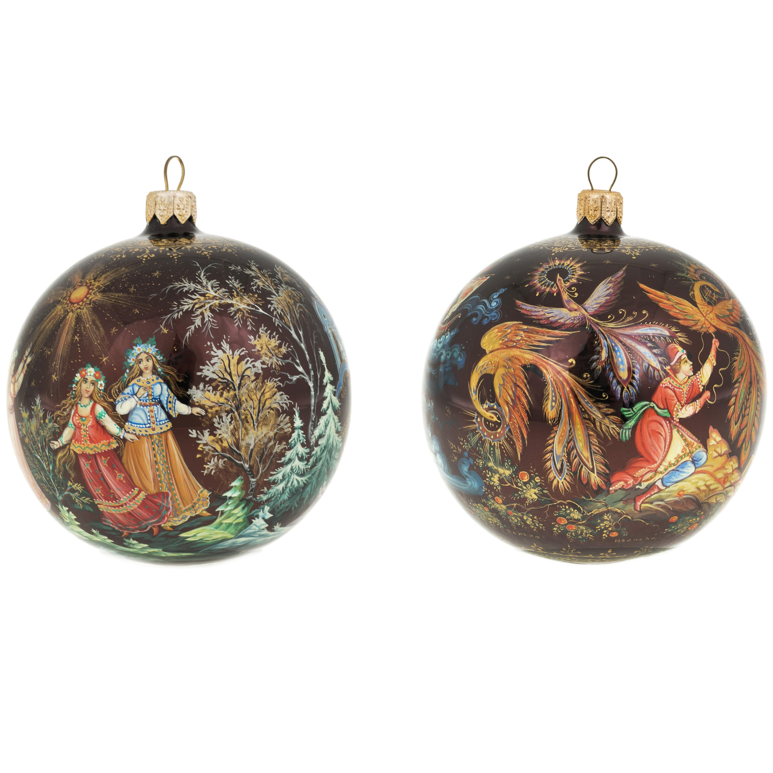Set of 2 pieces Christmas tree balls "Fairy Tales", Palekh