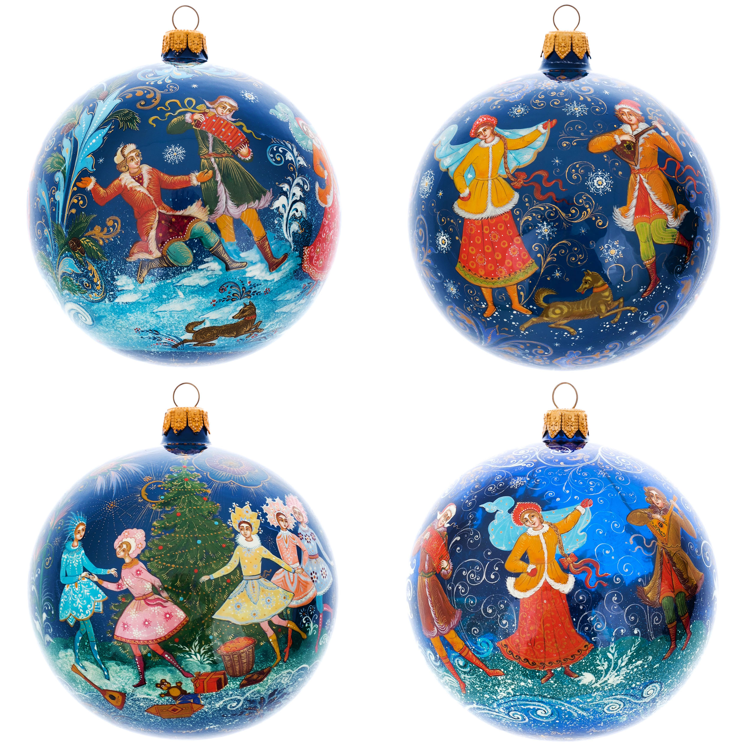 Set of 4pcs Christmas balls "Festivities", Palekh