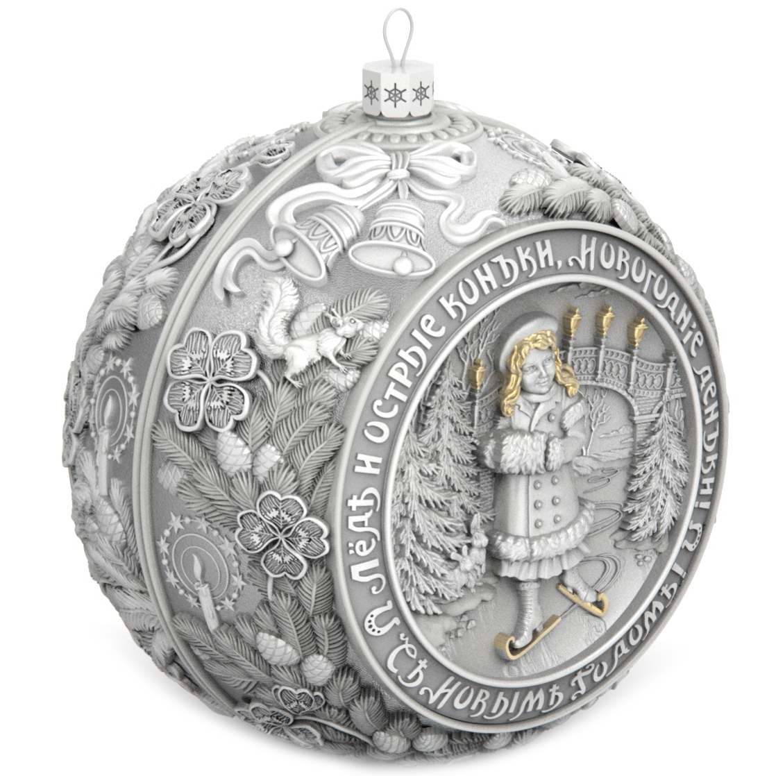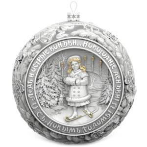 Silver-plated Christmas tree ball "Silver skates" with gilding