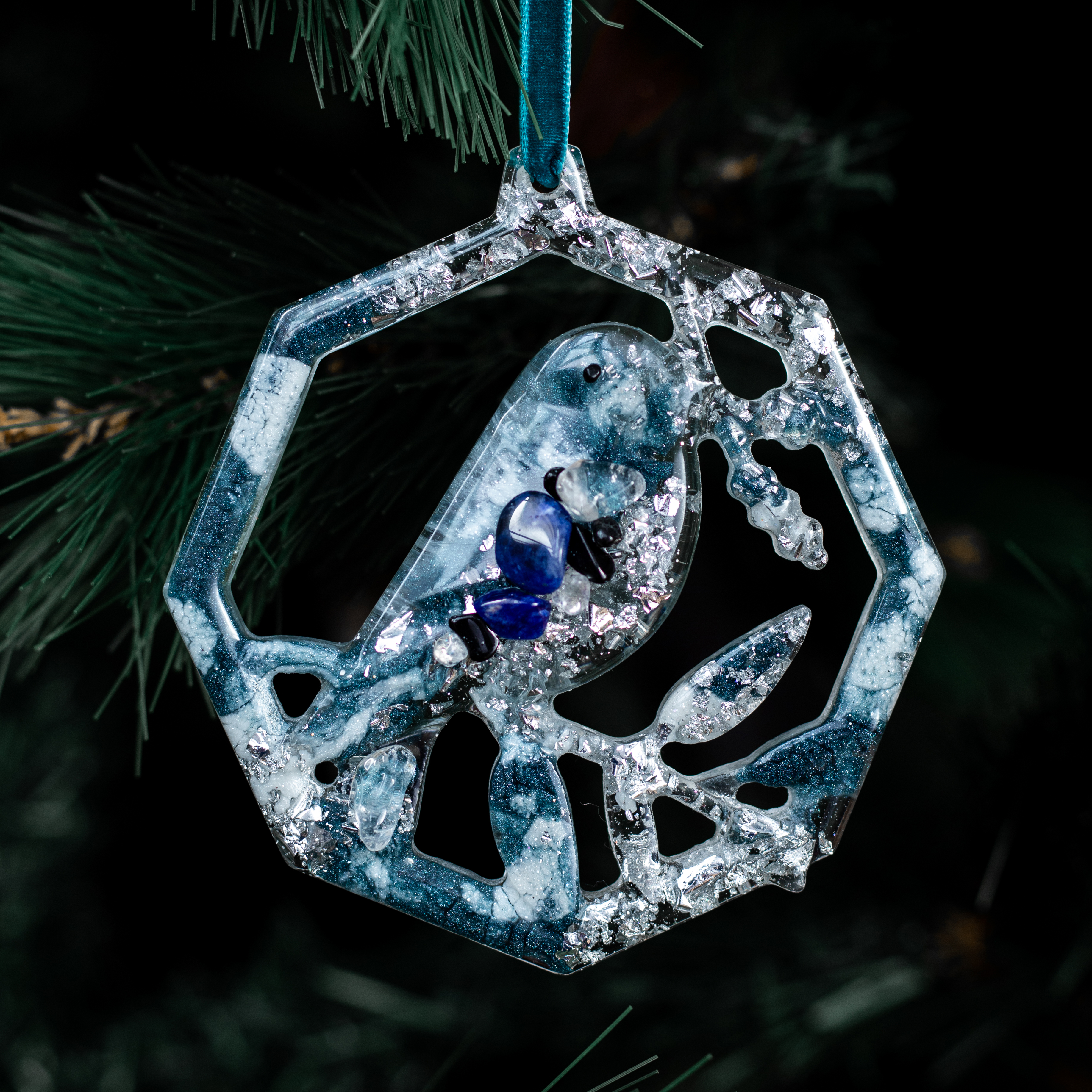 Christmas tree toy with a sapphire "Bullfinch" from the Stories collection