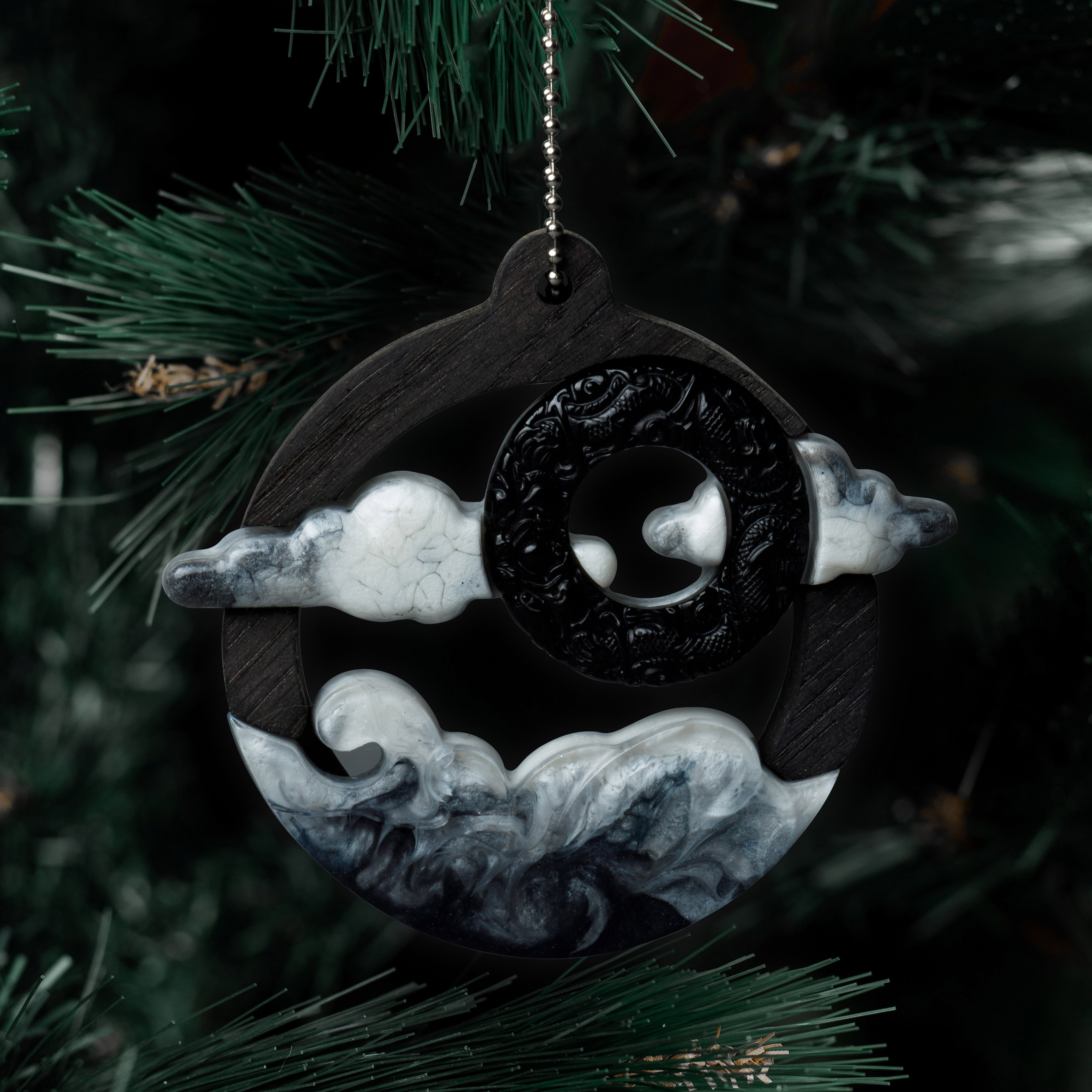 Mordovian jewelry Christmas tree toy "Landscape" with black obsidian
