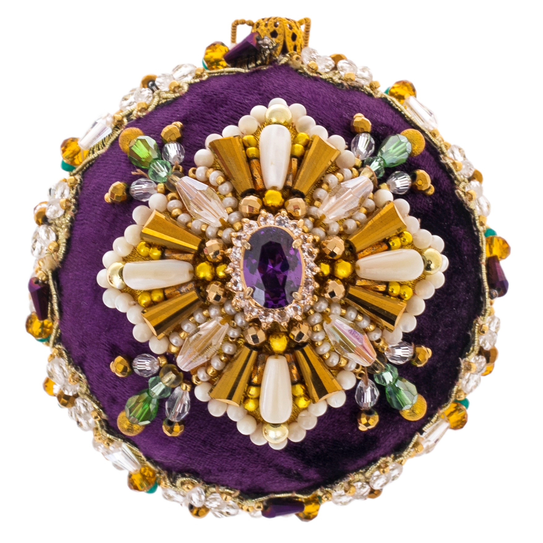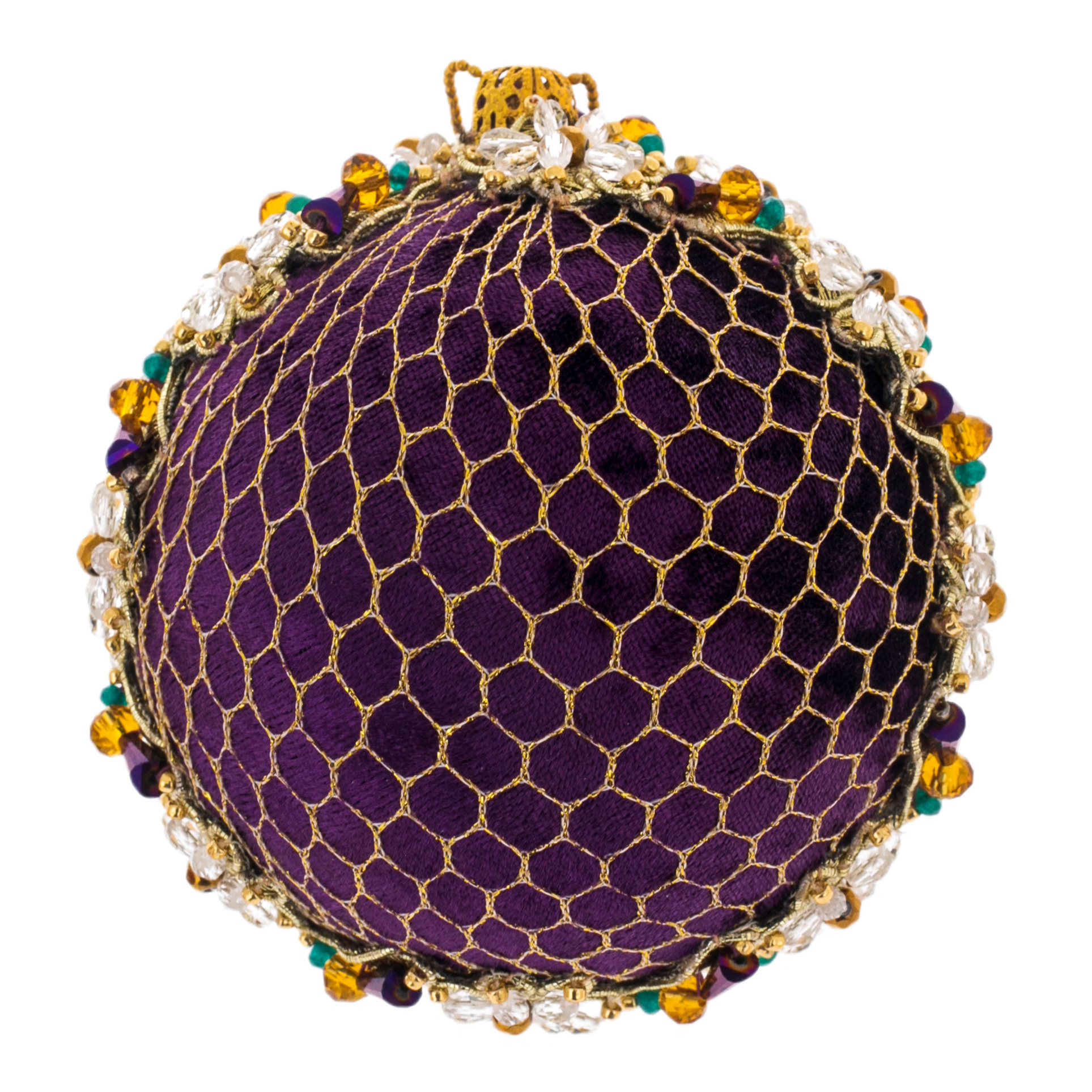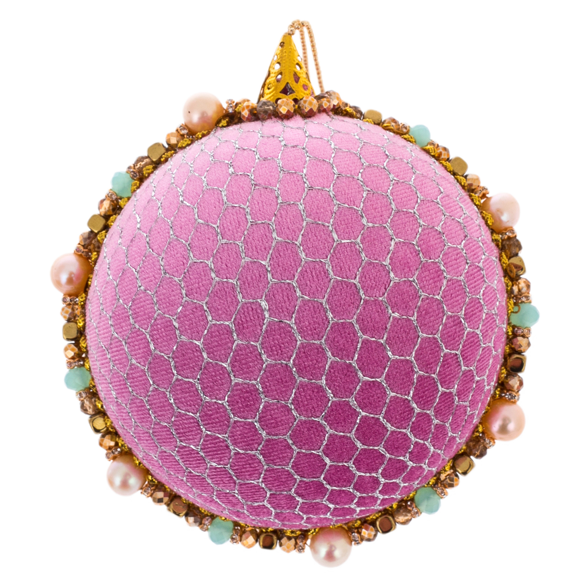 The rich texture highlights the depth and richness of the colors, evoking memories of grand balls and social gatherings. Gold chains and inlaid pearls wrap around the balls like necklaces adorning the empress' neck.