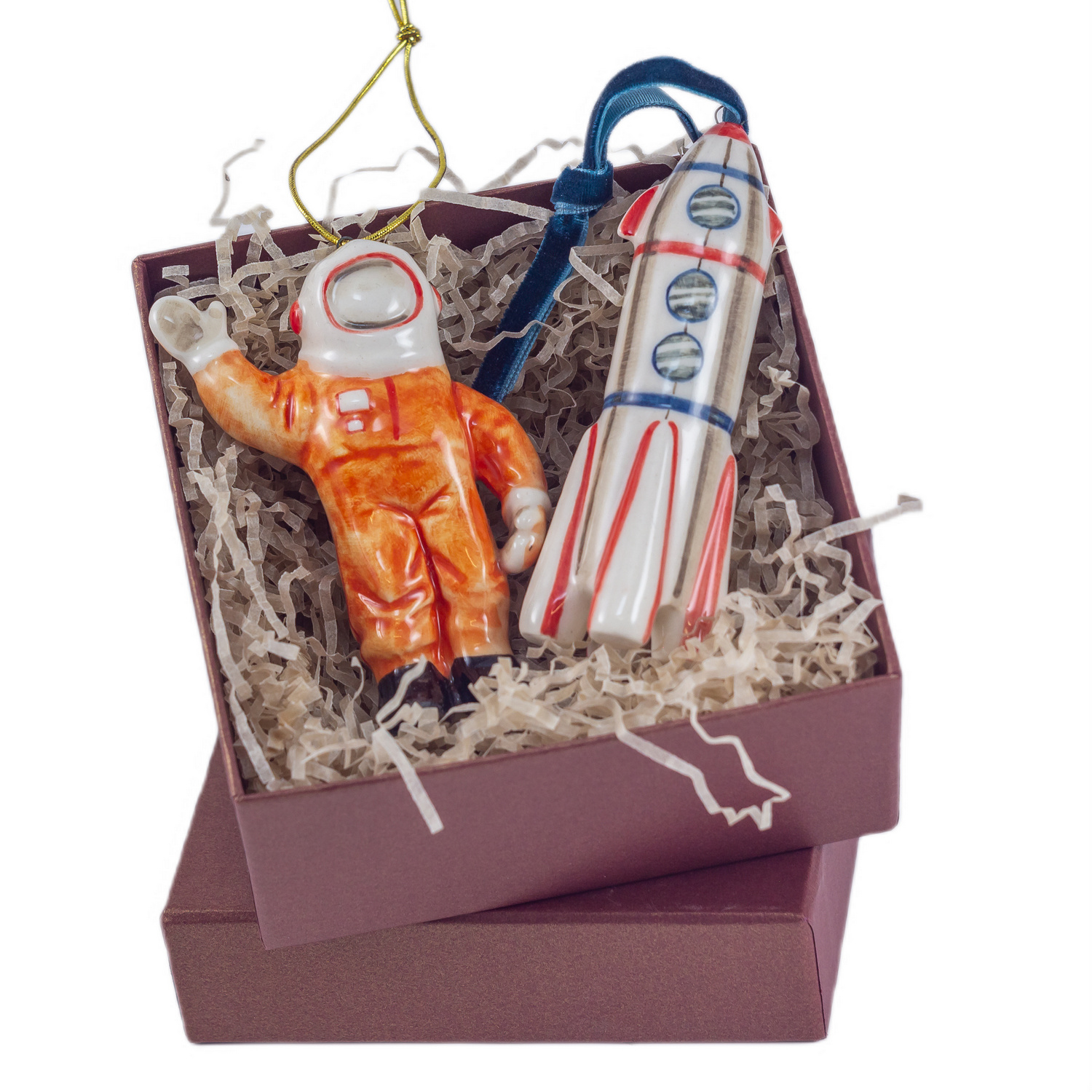Набор елочных игрушек из фарфора "В космос" 2 шт.