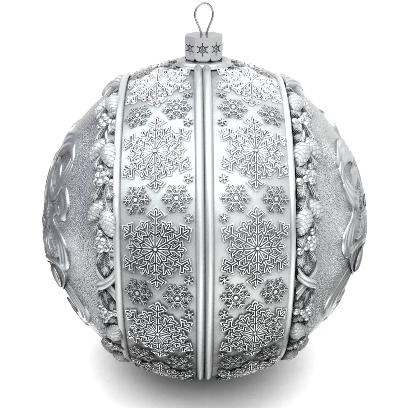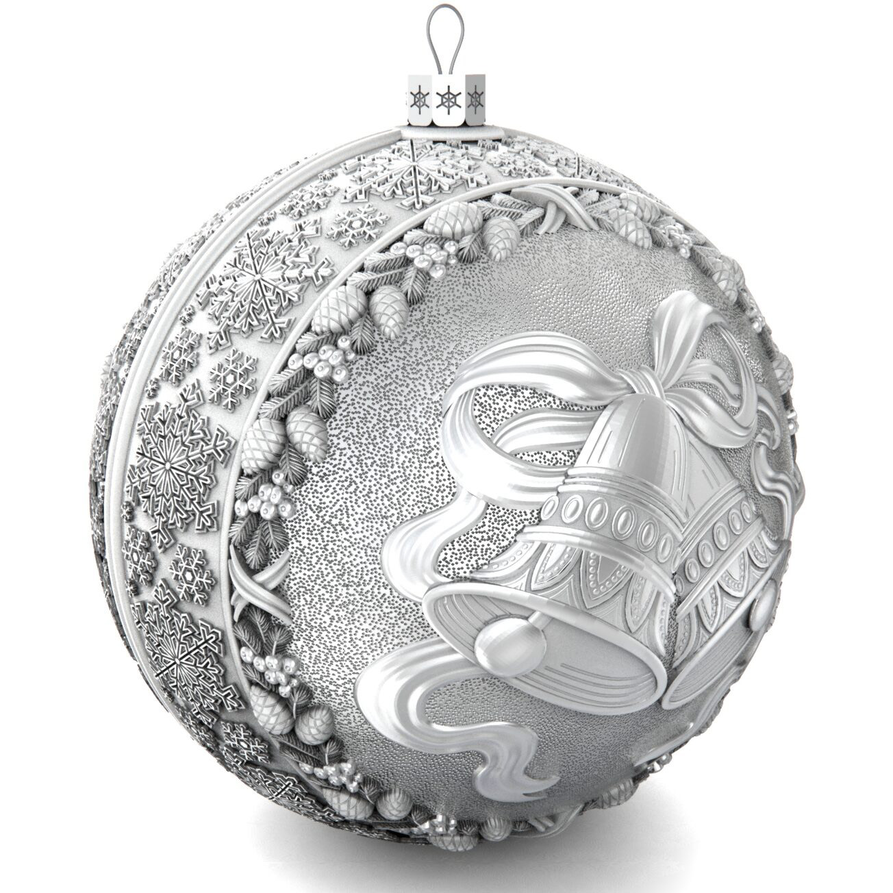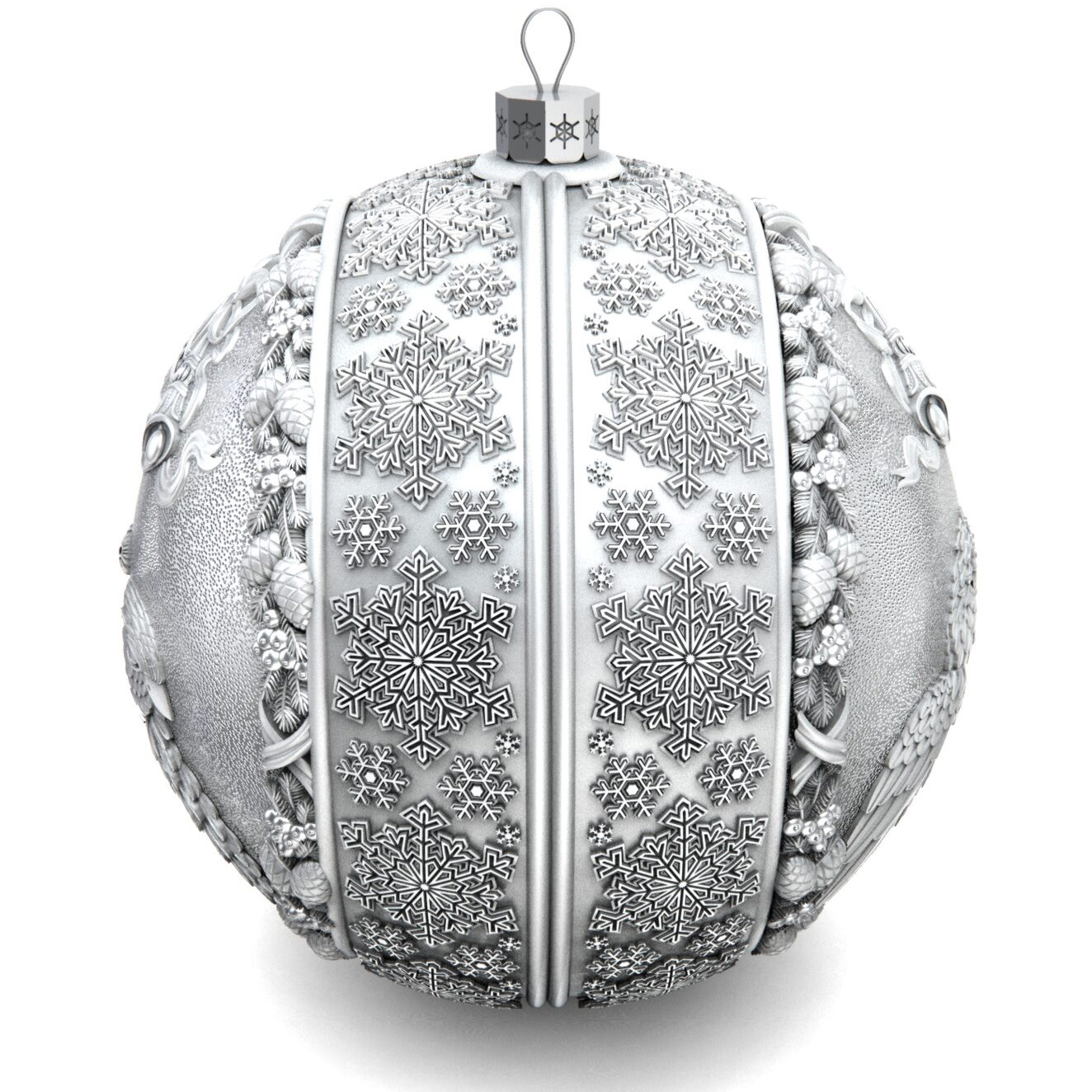 Set of 2 silver Christmas balls "Bells and Bullfinches"