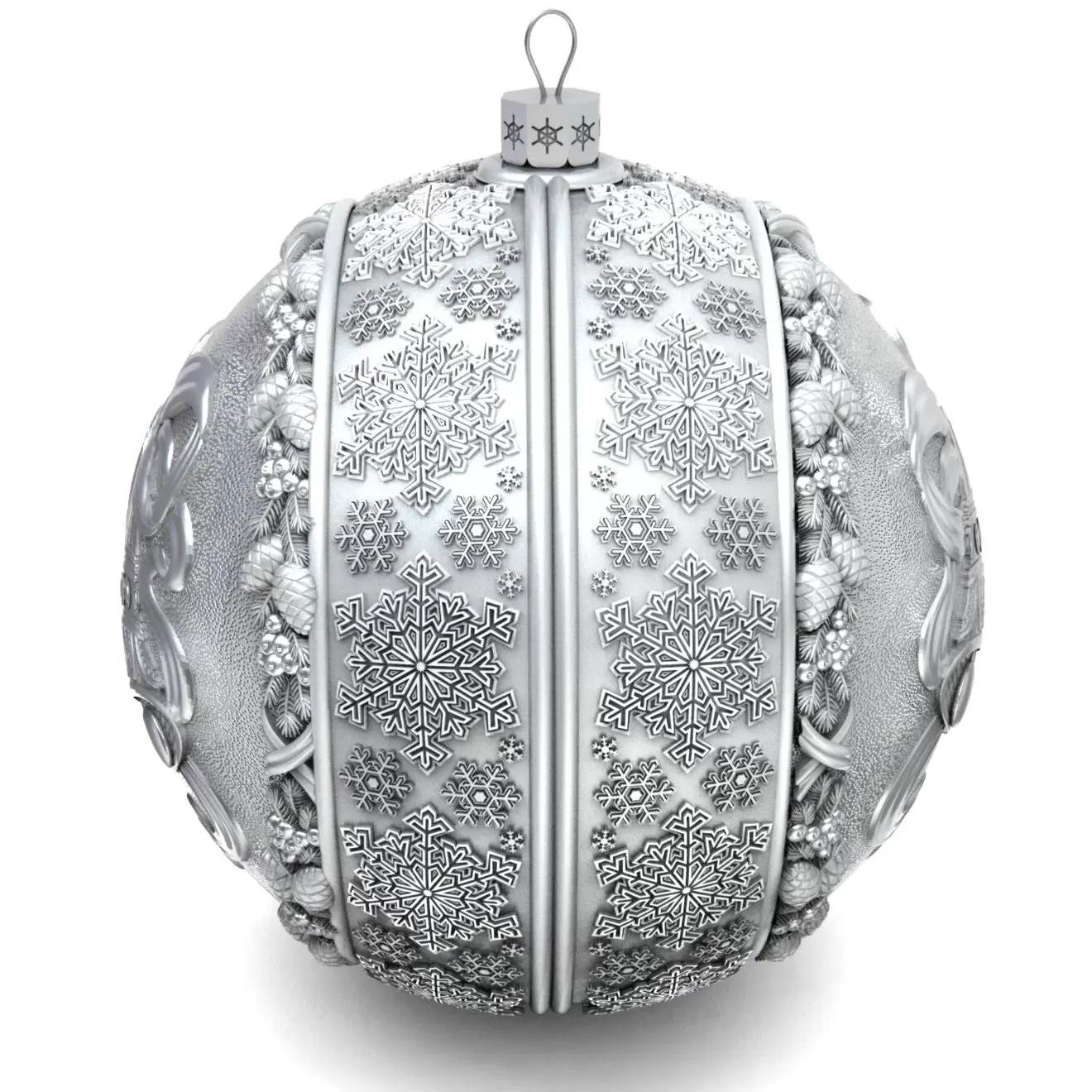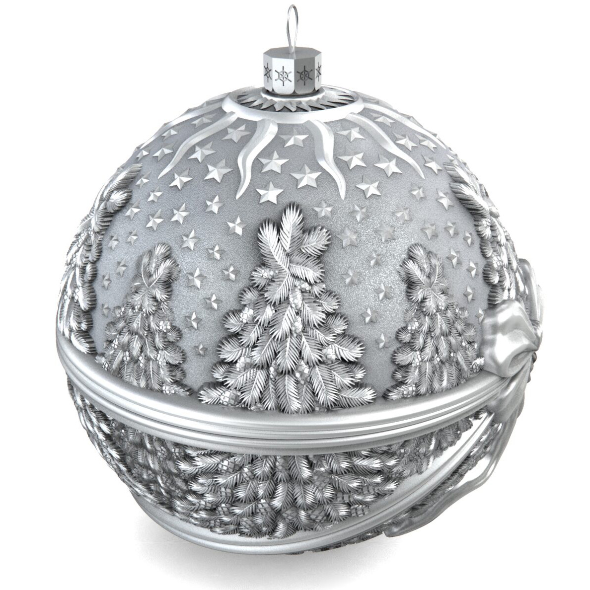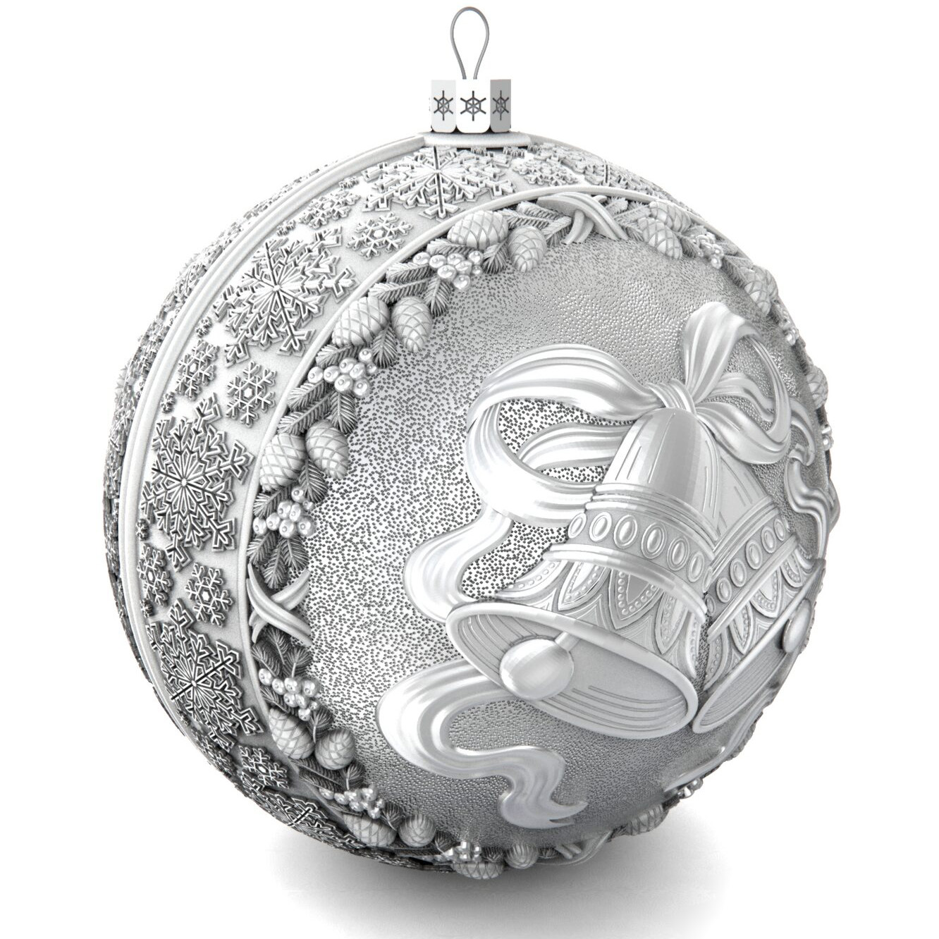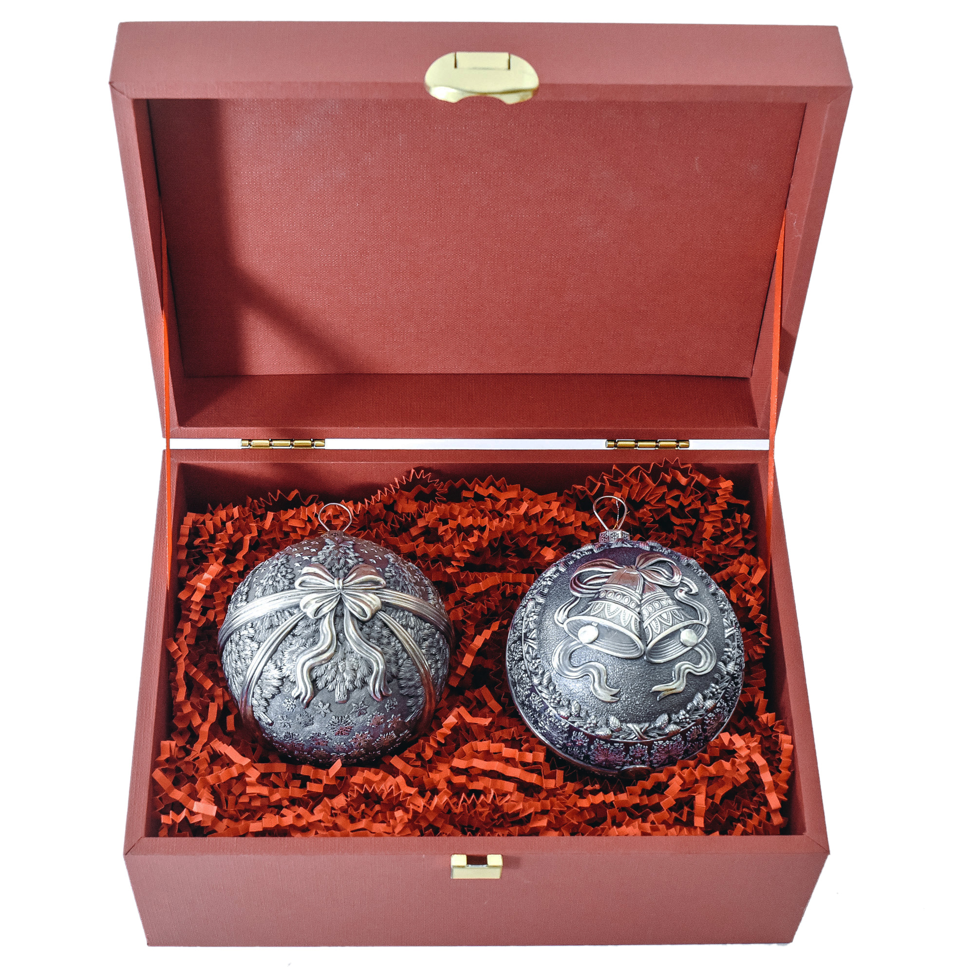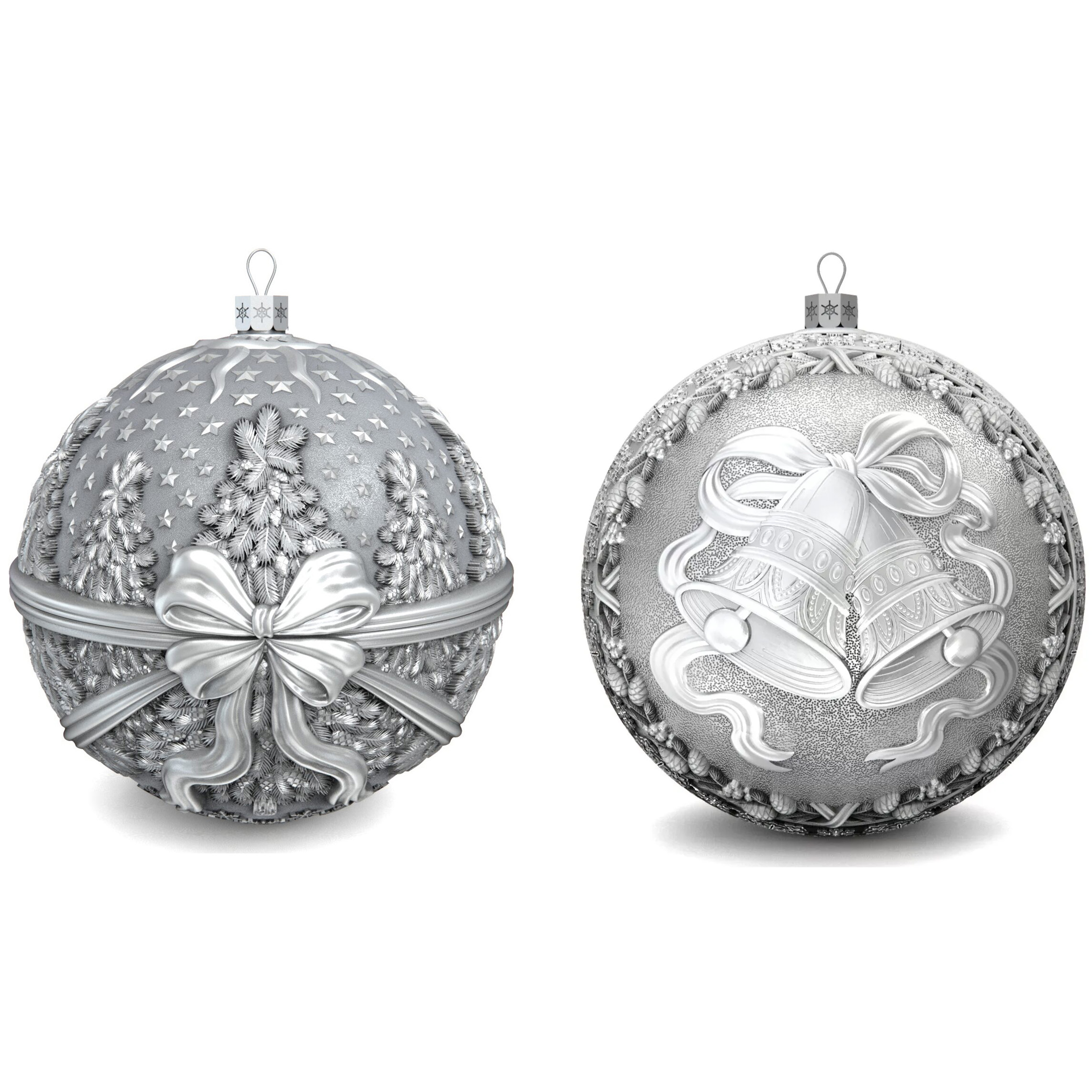 Set of 2 silver Christmas balls "Bells and a Winter fairy tale"
