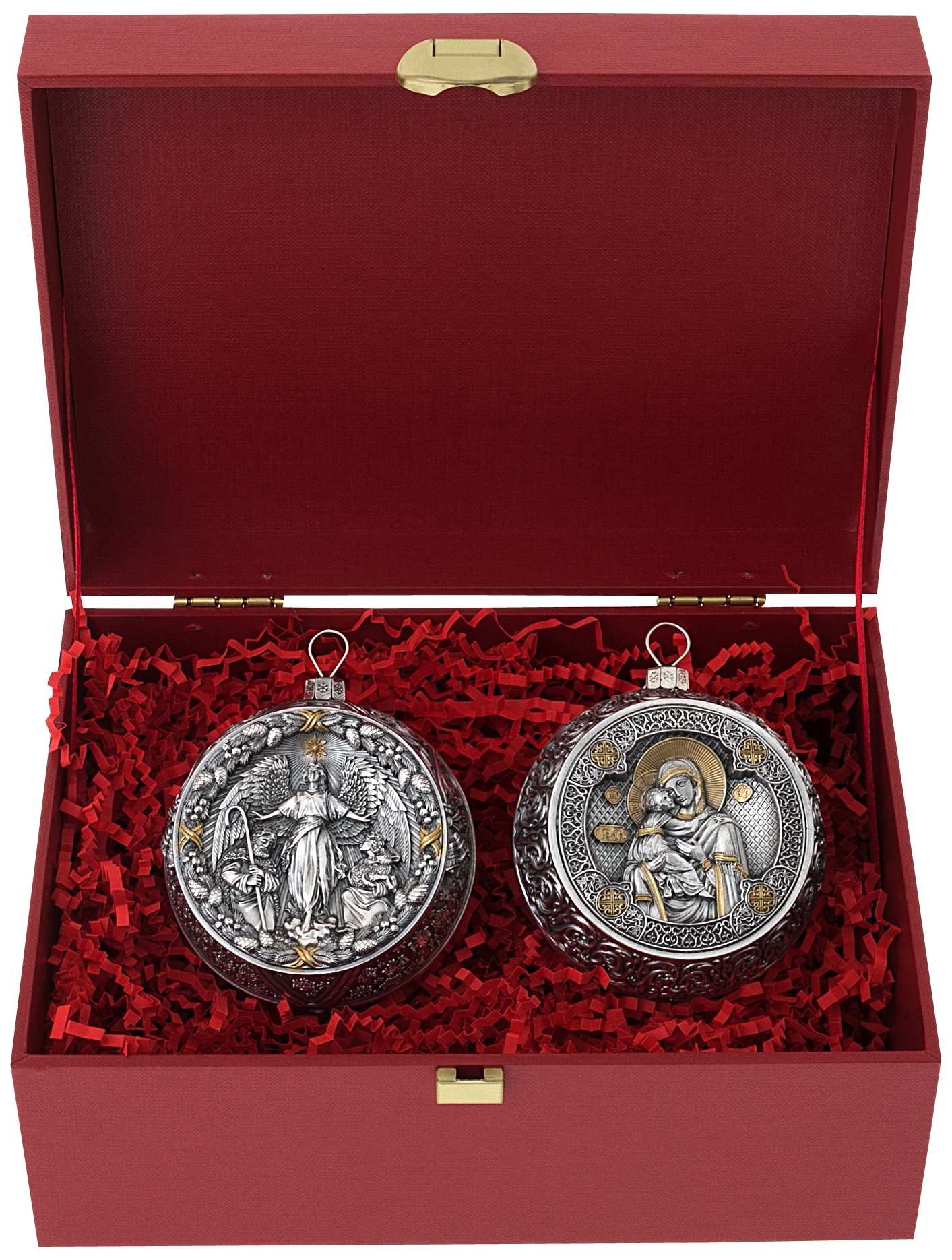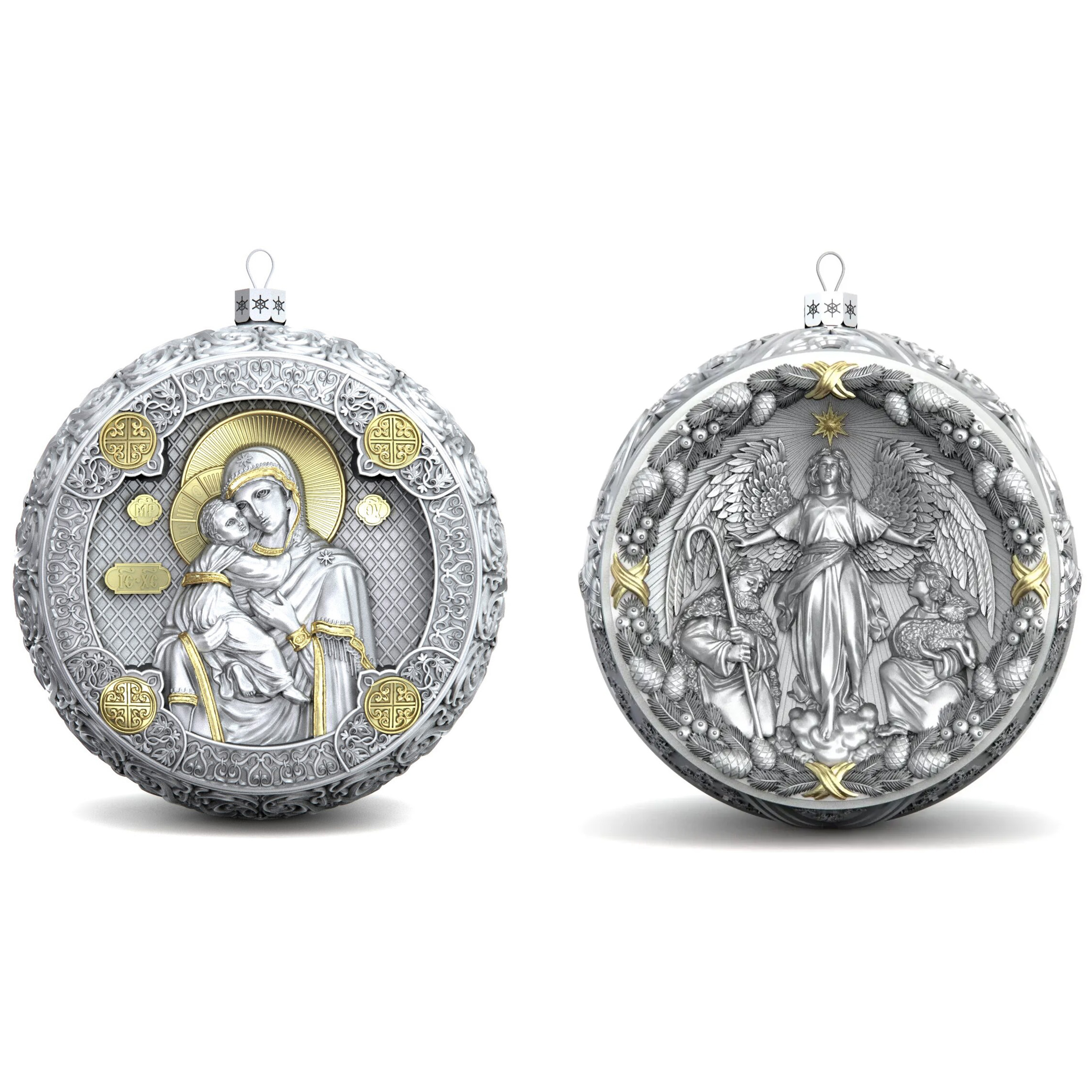Set of 2 silver Christmas tree balls "Orthodox and the Appearance of an angel"
