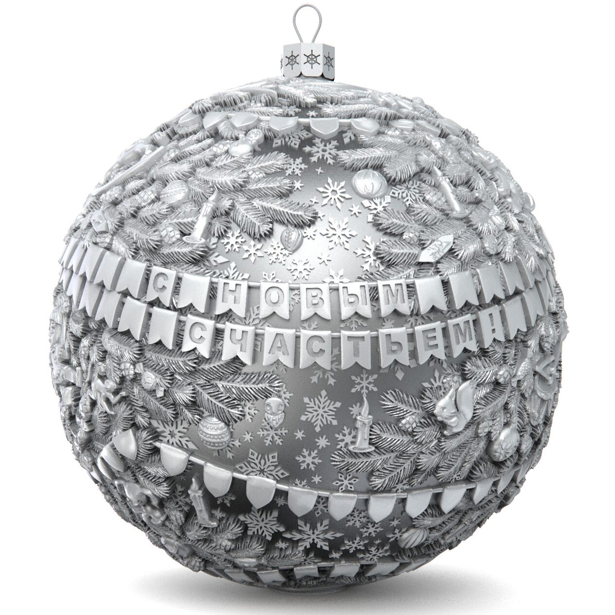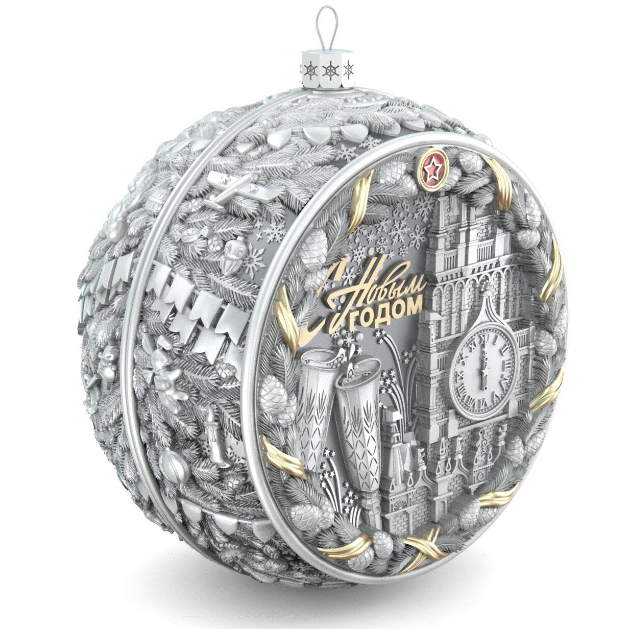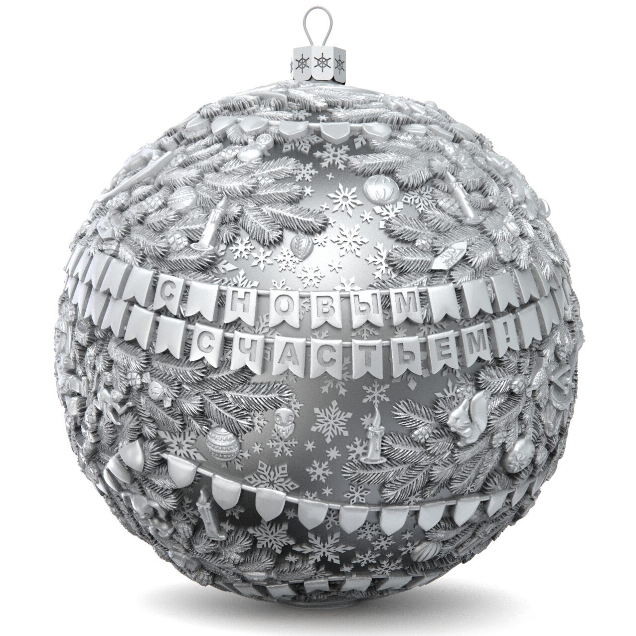 Set of 2 silver Christmas tree balls "Happy childhood and Nostalgia"