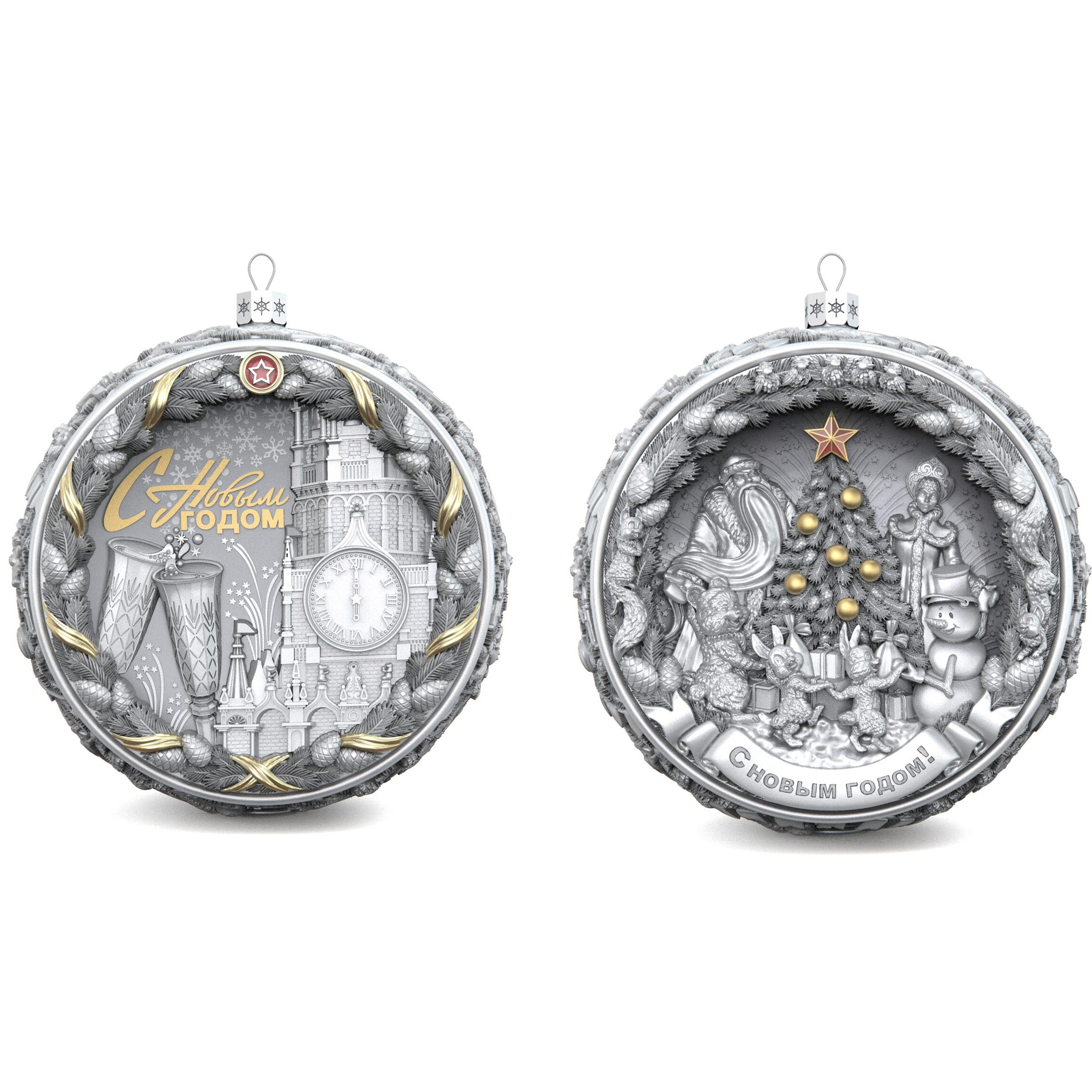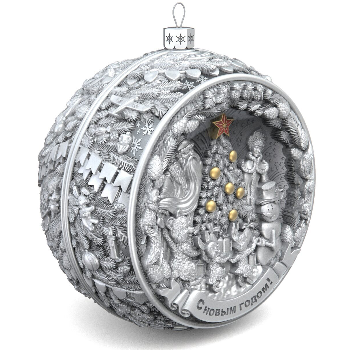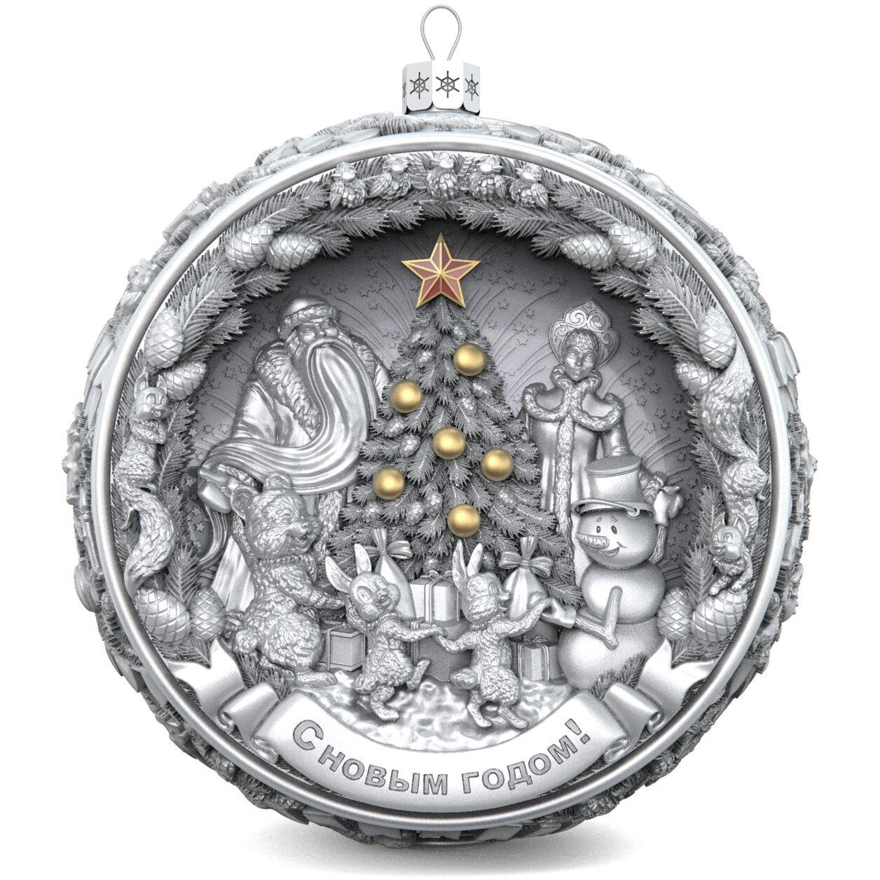 Set of 2 silver Christmas tree balls "Happy childhood and Nostalgia"