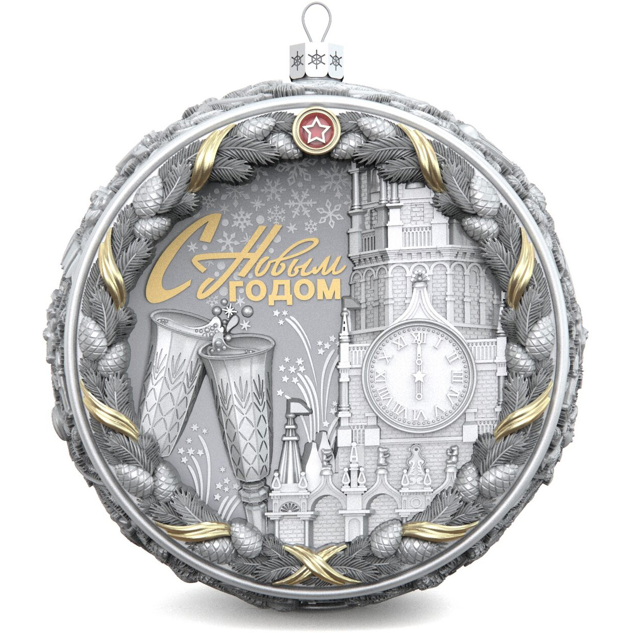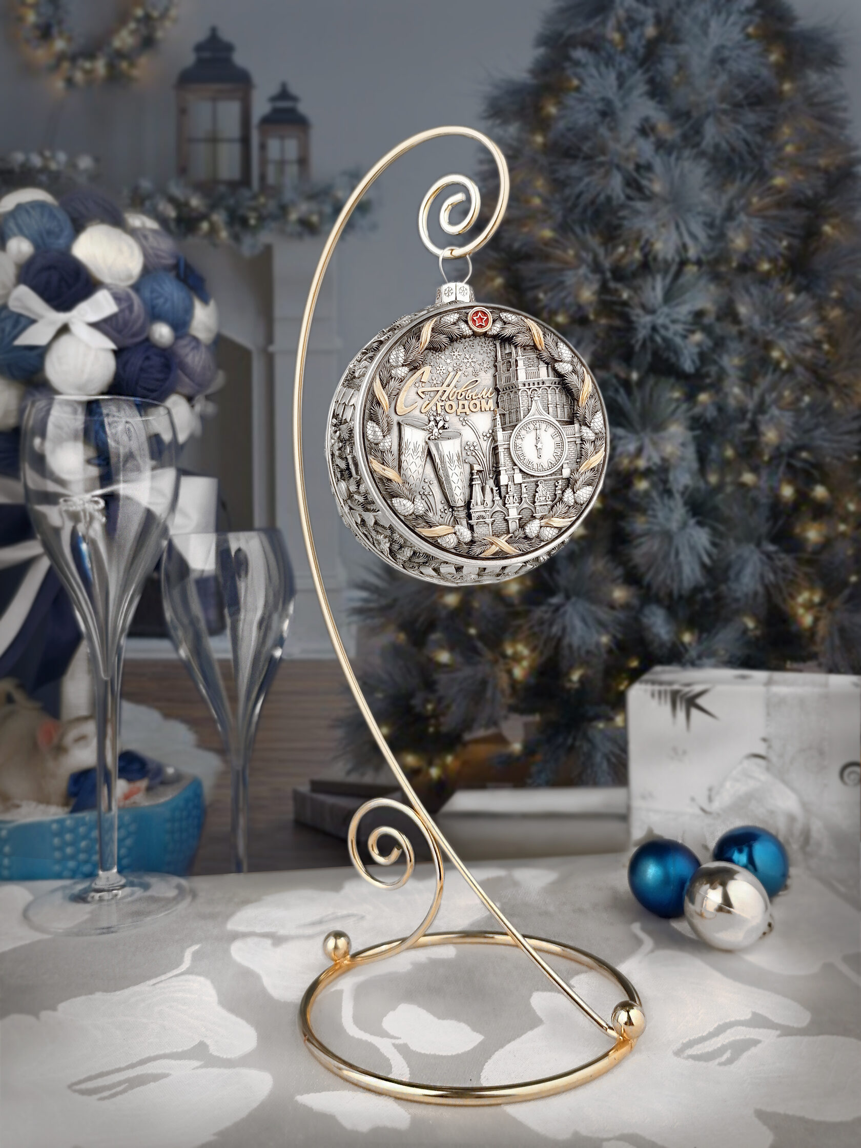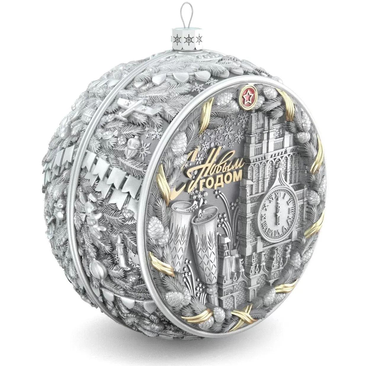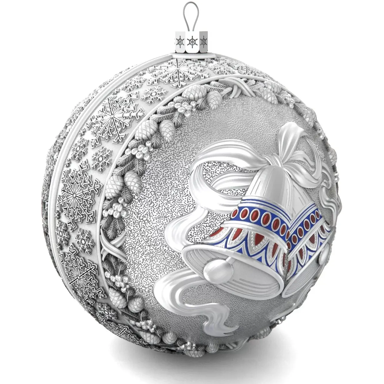 Set of 3 silver Christmas balls "Bells, Bullfinches and Nostalgia"