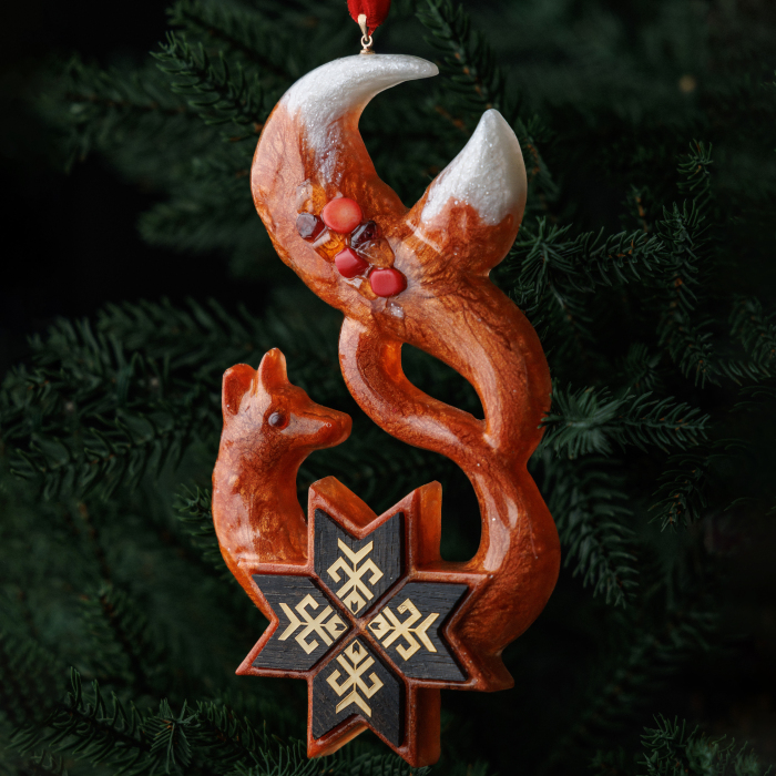 The decoration in the form of a fox and a star is a story of wisdom and cunning. The fox, an ancient symbol of intelligence and dexterity, guards its secrets, and the star in its paws is a sign of triumph and leadership, pointing the way to the top. The red color of the resin, rich and deep, enhances the image of strength and determination, emphasizing the passion and energy inherent in the owner of this masterpiece.