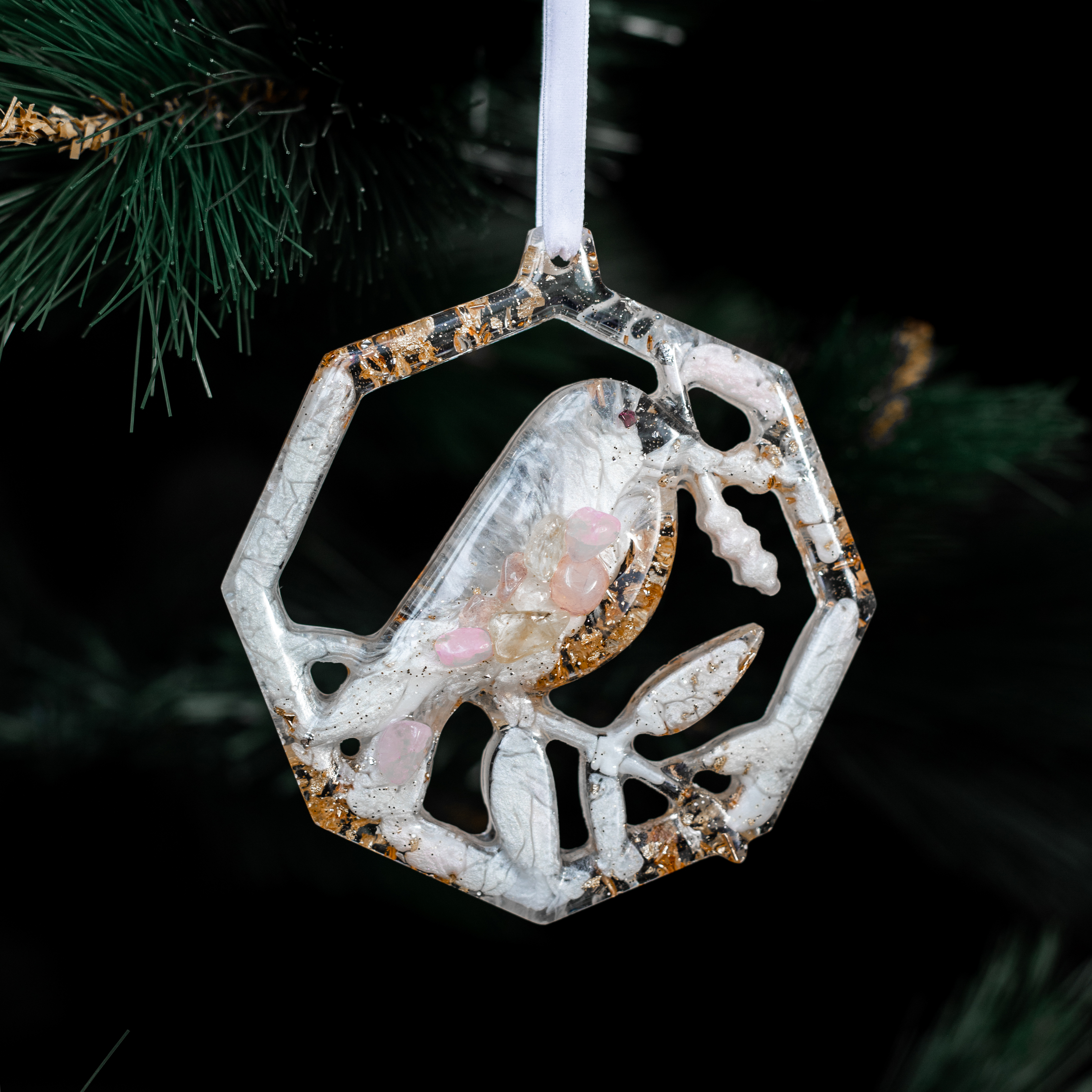 Set of Christmas tree toys with rose quartz "New Year's" collection "Stories" 3 pcs