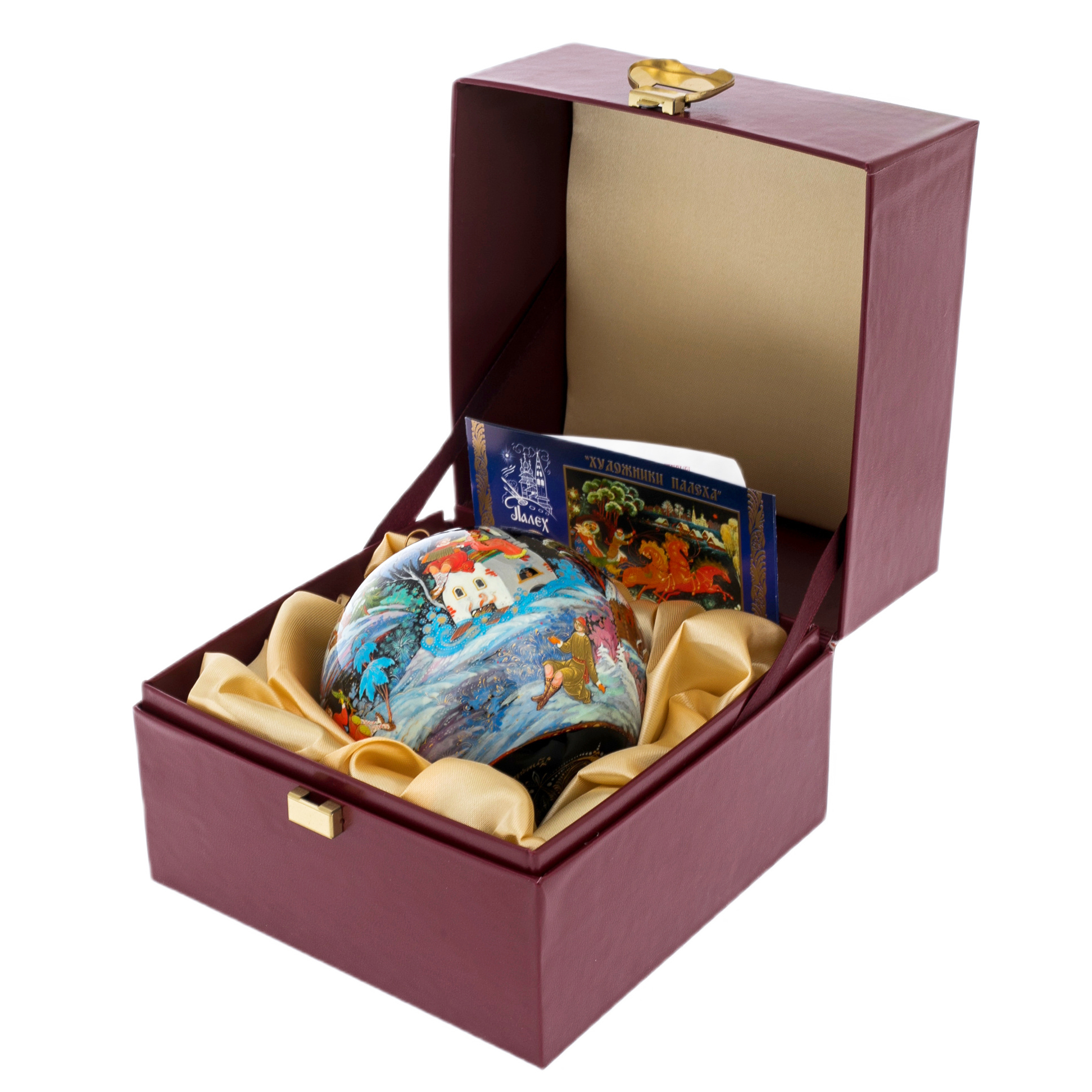 Christmas ball Palekh "Bentley" on a standChristmas ball Palekh "Bentley" on a standThe Christmas ball is not only a favorite Christmas decoration since childhood, but also a symbol of luxury and prosperity. It first appeared in the middle of the XIX century through the efforts of glass blowers in the German town of Lausha. Only the most well-off people could afford this fragile pleasure. And although technological progress has since offered many alternatives to celebrating humanity, elite Christmas balls are still at a great price. After all, each of them is a real man–made miracle!