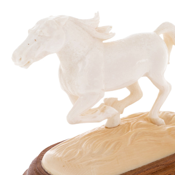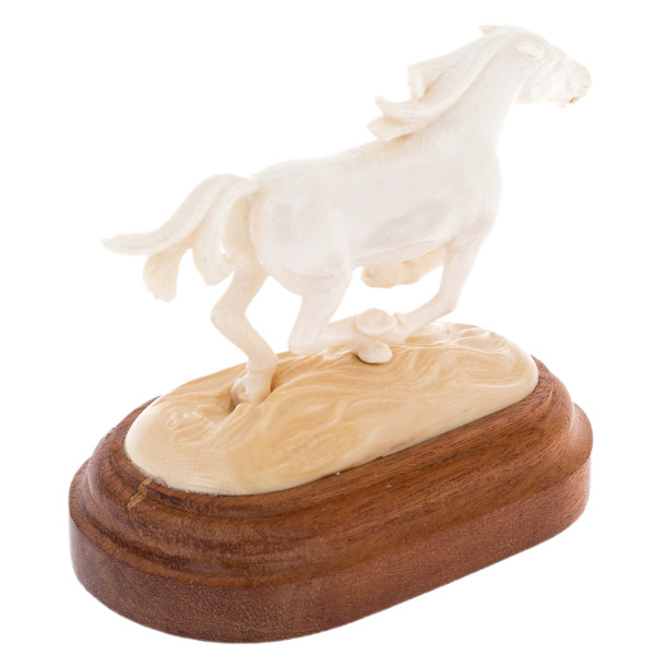 The sculpture of an elk horn and a mammoth tusk "Horse" is largeThe sculpture of an elk horn and a mammoth tusk "Horse" is largeThe big Horse sculpture made of elk horn and mammoth tusk is the embodiment of perpetual motion, strength and freedom, encased in a rare natural material that has passed through millennia. The warm shade of ancient bone, polished to a soft silky sheen, gives rise to the feeling of a living breath of nature.