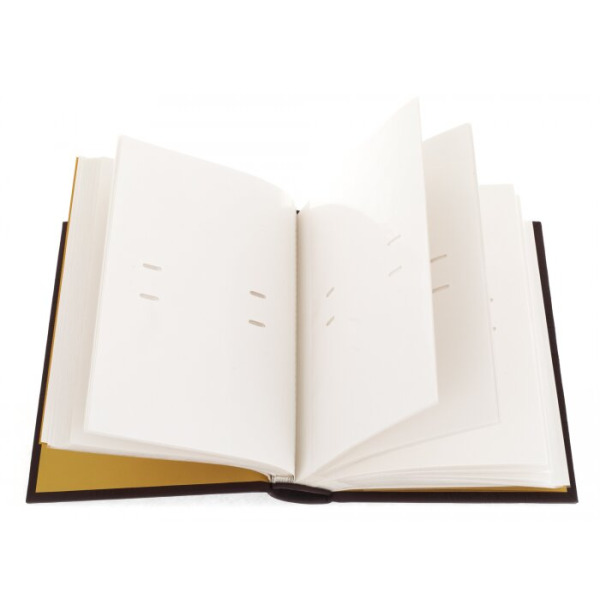 With the help of artistic embossing on the cover made of genuine calfskin, the durability of this product is guaranteed. The design of the convex geometric texture and its wonderful decoration with patterns and monograms create a special style of the album.